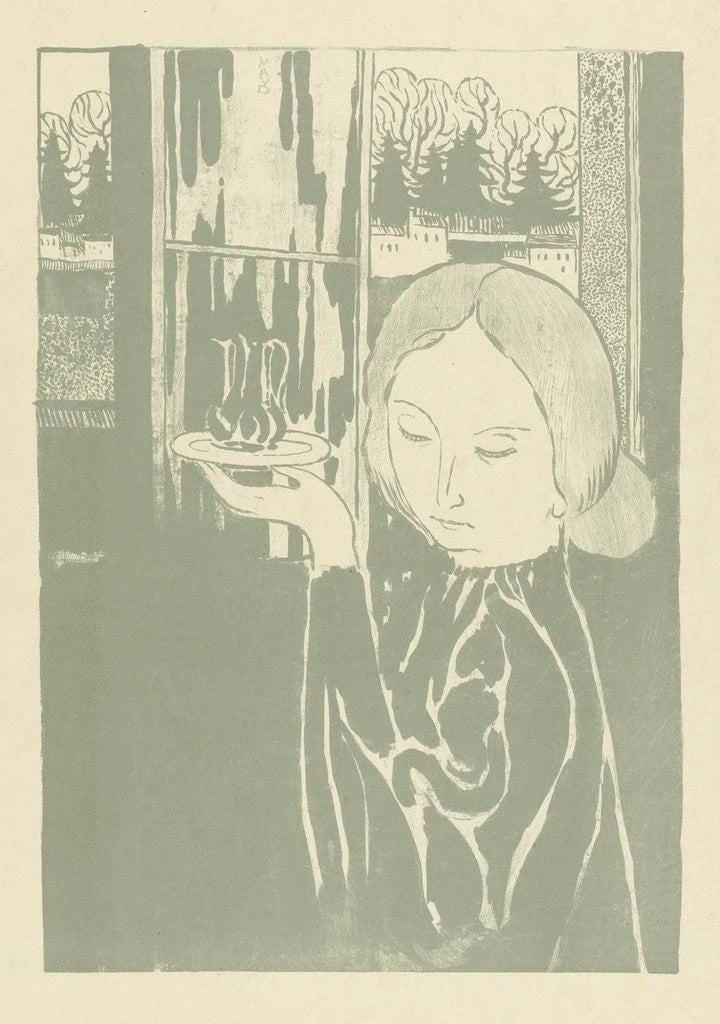 Femme mit Wasserkrug auf Tablett: eine intime und farbenfrohe Szene