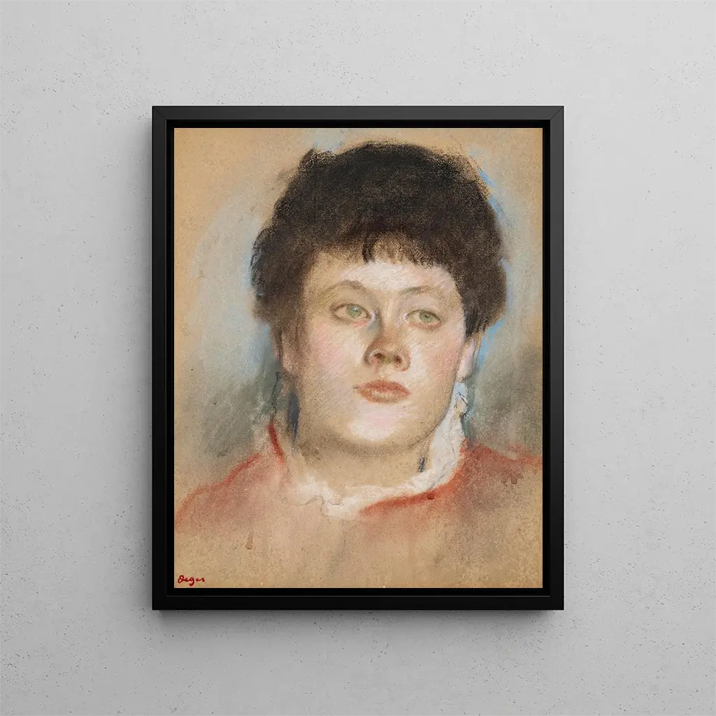 Der Stil von Edgar Degas zeichnet sich durch seinen innovativen Ansatz in Komposition und Farbgebung aus. Im "Portrait de femme" verwendet er fließende Pinselstriche und subtile Farbnuancen, um seinem Motiv Leben einzuhauchen. Die Pastelltechnik, die er besonders schätzt, ermöglicht es, reiche Texturen und beeindruckende Kontraste zu schaffen, die die natürliche Schönheit der dargestellten Frau betonen. Degas spielt auch mit Licht und Schatten und schafft eine intime Atmosphäre, die einen flüchtigen Moment einzufangen scheint. Dieses Werk ist emblematisch für sein Talent, das tägliche Leben zu verewigen und die Komplexität menschlicher Emotionen zu erforschen, wobei jeder Blick auf das Gemälde ein einzigartiges Erlebnis ist.