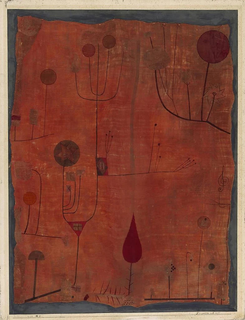 Früchte vor rotem Hintergrund - Paul Klee