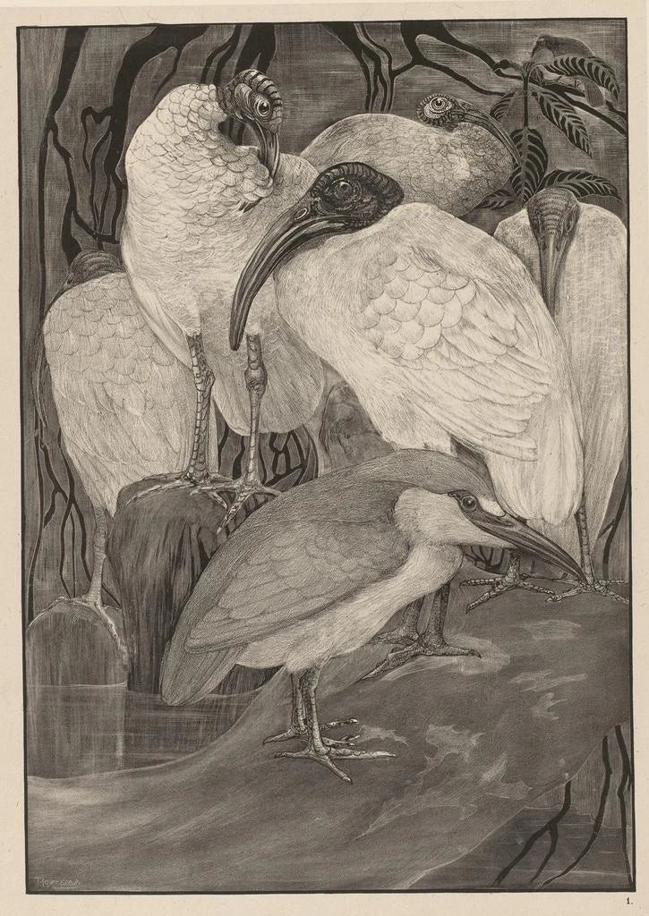 Kunstdruck | Fünf Ibisse und eine Bihoreau - Theo van Hoytema