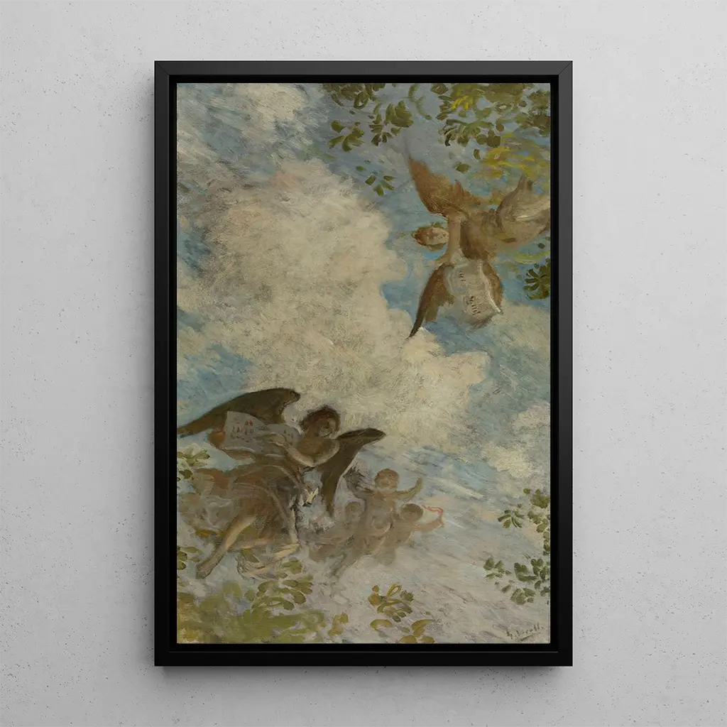 In "Genie der Buchstaben" illustriert Henry Lerolle die Kraft des Denkens und der Kreativität durch eine reichhaltige Komposition voller Symbolik. Das Gemälde zeigt eine zentrale Figur, umgeben von Büchern und Objekten, die Literatur und Kunst hervorrufen, in einer hellen und inspirierenden Atmosphäre. Die warmen Farben und die sorgfältigen Details schaffen eine dynamische Stimmung, in der Intellekt und Fantasie zu verschmelzen scheinen. Dieses Werk lädt den Betrachter ein, über die Rolle der Buchstaben und der Kultur in der Gesellschaft nachzudenken, und feiert gleichzeitig die Schönheit des menschlichen Geistes.