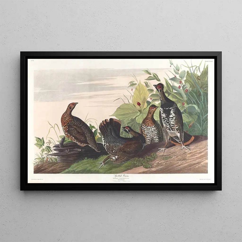 Gélinotte tachetée : ein Porträt der Wildfauna Die kunstdruck der Gélinotte tachetée von John James Audubon fängt die Essenz des wilden Lebens ein. Mit detaillierten Feinheiten und lebendigen Farben hebt dieses Werk die Schönheit dieses Vogels hervor, der sowohl majestätisch als auch diskret ist. Die zart wiedergegebenen Federn und der natürliche Hintergrund schaffen eine immersive Atmosphäre und laden den Betrachter ein, die Vielfalt der Fauna zu schätzen. Audubon gelingt es durch sein Talent, ein Gefühl von Bewegung und Lebendigkeit zu vermitteln, wodurch dieses Gemälde eine wahre Hommage an die Natur wird. John James Audubon : der Pionier der künstlerischen Ornithologie John James Audubon, Naturforscher und Maler des frühen 19. Jahrhunderts, revolutionierte die Darstellung von Vögeln durch seinen wissenschaftlichen und künstlerischen Ansatz. Seine Werke, darunter der kunstdruck der Gélinotte tachetée, sind das Ergebnis sorgfältiger Beobachtung und einer tiefen Liebe zur Natur. Audubon reiste durch die Vereinigten Staaten und dokumentierte die Vogelwelt mit unvergleichlicher Präzision, was ihm einen besonderen Platz in der Geschichte von Kunst und Wissenschaft einbrachte. Seine Arbeit hat nicht nur die Welt der Kunst bereichert, sondern auch das Bewusstsein für Naturschutz geschärft. Eine dekorative Anschaffung mit vielfältigen Vorteilen Der kunstdruck des Gemäldes der Gélinotte tachetée ist eine ideale Dekorationswahl für alle, die ihrer Einrichtung einen Hauch von Natur verleihen möchten. Ob im Wohnzimmer, im Büro oder im Schlafzimmer, dieses Bild wird die Aufmerksamkeit auf sich ziehen und Bewunderung hervorrufen. Die Druckqualität garantiert eine perfekte Detailtreue des Originalwerks, sodass man die Schönheit der Kunst von Audubon genießen kann. Durch die Integration dieses Kunstdrucks in Ihre Dekoration fügen Sie ein einzigartiges Stück hinzu, das die Pracht der wilden Fauna widerspiegelt und gleichzeitig Ihren Wohnraum bereichert.