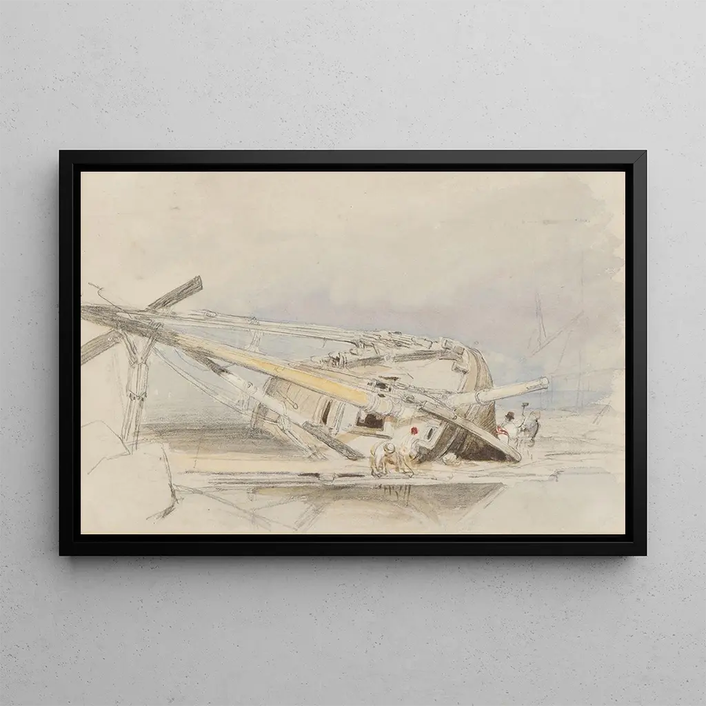Bateau échoué : eine Szene maritimer Verzweiflung L'œuvre "Bateau échoué" de Clarkson Stanfield évoque une atmosphère mélancolique où la nature reprend ses droits sur l'homme. Dans cette toile, des couleurs sombres et des nuances de gris dominent, créant un contraste saisissant avec les éclats de lumière qui percent à travers les nuages. La composition met en avant un navire échoué sur une plage, entouré de vagues tumultueuses et de rochers, symbolisant la lutte entre l'homme et les forces de la mer. La technique de Stanfield, mêlant réalisme et romantisme, invite le spectateur à ressentir la puissance de la nature tout en contemplant la fragilité de l'existence humaine. Clarkson Stanfield : ein Meister der maritimen Landschaft Clarkson Stanfield, aktiv im 19. Jahrhundert, ist bekannt für seine maritimen Darstellungen, die die Schönheit und Gefährlichkeit der Meere einfangen. Beeinflusst von der romantischen Bewegung, verstand er es, präzise Technik mit emotionaler Sensibilität zu verbinden. Seine Arbeiten sind in einer Epoche entstanden, in der die Landschaftsmalerei einen Aufschwung erlebte, und er zeichnet sich durch seine Fähigkeit aus, dramatische Atmosphären zu vermitteln. Stanfield war auch Bühnenmaler, was seine visuelle Herangehensweise bereicherte. Seine Werke, darunter "Bateau échoué", zeugen von der Bedeutung des Meeres im kollektiven Imaginaire seiner Zeit. Eine dekorative Reproduktion mit vielfältigen Vorzügen Die reproduction von "Bateau échoué" ist ein dekoratives Stück, das Ihr Interieur bereichern wird, sei es im Wohnzimmer, Büro oder Schlafzimmer. Die hochwertige Druckqualität ermöglicht es, die Tiefe und Textur des Originalwerks vollständig zu erfassen, während es gleichzeitig eine elegante Note in Ihre Dekoration bringt. Dieses Bild, mit seinem unbestreitbaren ästhetischen Reiz, lädt zur Reflexion und Flucht ein, sodass jeder Blick eine neue Entdeckung wird. Verleihen Sie Ihrem Raum eine einzigartige Atmosphäre mit dieser Leinwand, die Kunst und Emotion verbindet.