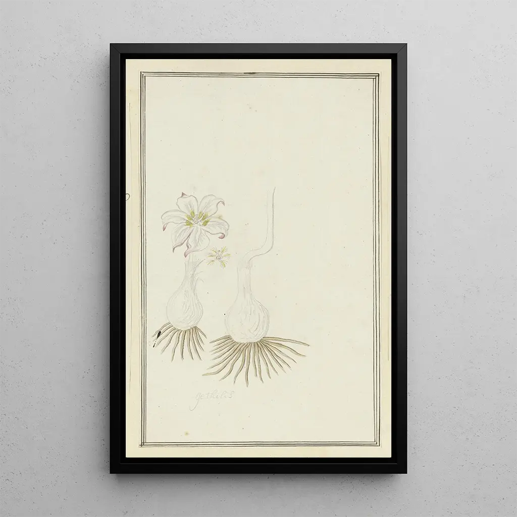Die kunstdruck von Gethyllis sp, Kukumakranka entführt uns in das Herz eines üppigen Gartens, in dem die Zartheit der Blumen unter einem strahlenden Himmel erblüht. Die lebendigen Nuancen von Gelb und Violett verschmelzen zu einem lebendigen Gemälde, das den Blick anzieht. Die Aquarelltechnik, meisterhaft von Robert Jacob Gordon beherrscht, verleiht diesem Werk eine Leichtigkeit und Fließfähigkeit, die die Bewegung der Blütenblätter im Wind nachahmen. Jedes Detail ist sorgfältig wiedergegeben und lädt den Betrachter ein, die vergängliche Schönheit dieser Blumen zu bewundern. Dieses Bild ist eine wahre Feier der Natur und fängt die Essenz des pflanzlichen Lebens ein.