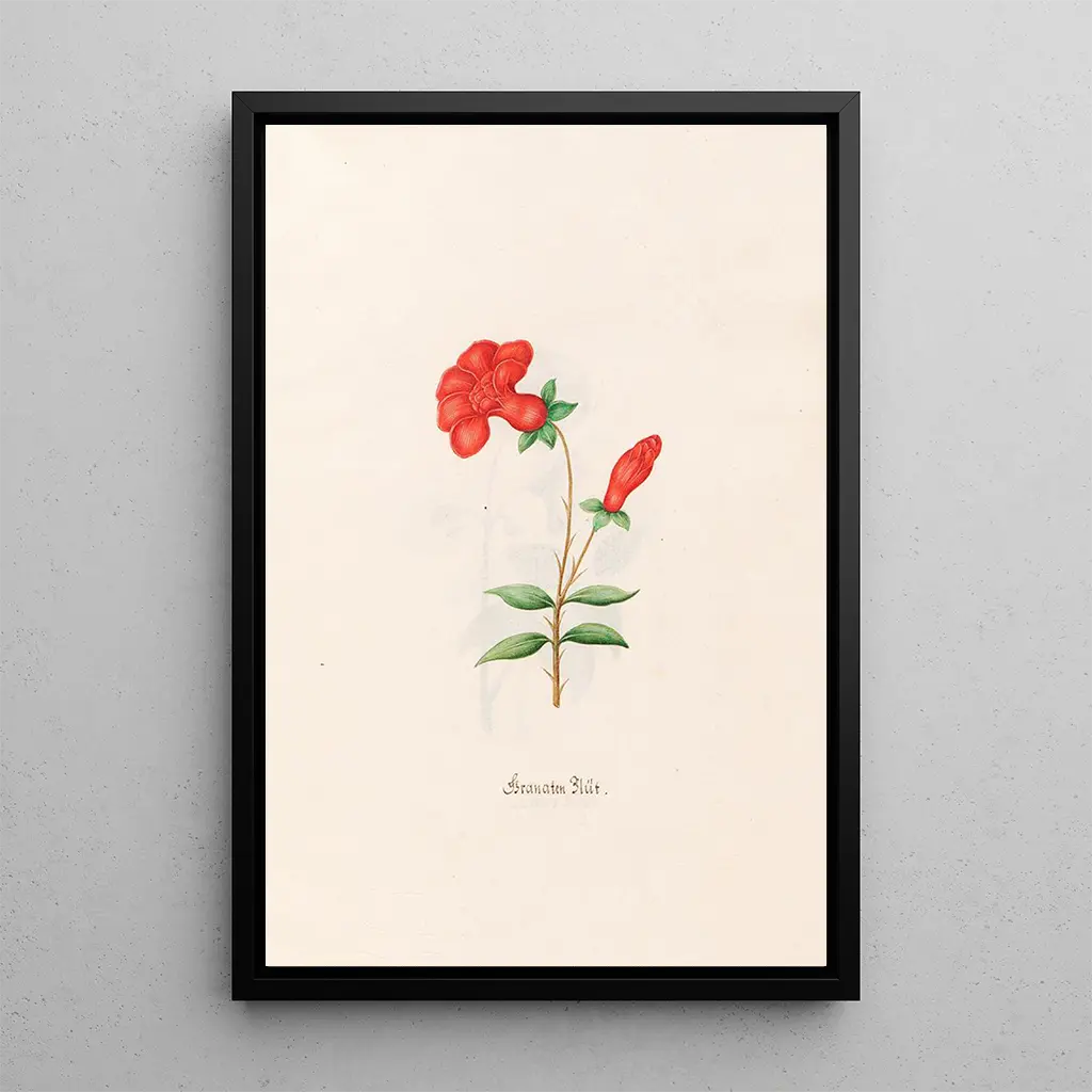Der kunstdruck der Granatapfelblüte ist ein ideales Dekorationsstück, um die Atmosphäre Ihres Zuhauses zu bereichern, sei es im Wohnzimmer, Büro oder Schlafzimmer. Die lebendige Farbpalette und die realistische Darstellung bringen Frische und Vitalität in jeden Raum. Die Qualität des kunstdrucks garantiert eine Treue zum Originalwerk, sodass Sie dessen ästhetischen Reiz ohne Kompromisse genießen können. Mit diesem Bild entscheiden Sie sich für ein Kunstwerk, das nicht nur Ihre Dekoration verschönert, sondern auch die zeitlose Schönheit der Natur widerspiegelt.
