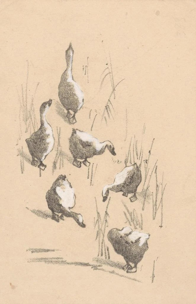 Kunstdruck | Grußkarte mit sechs Gänsen - Theo van Hoytema