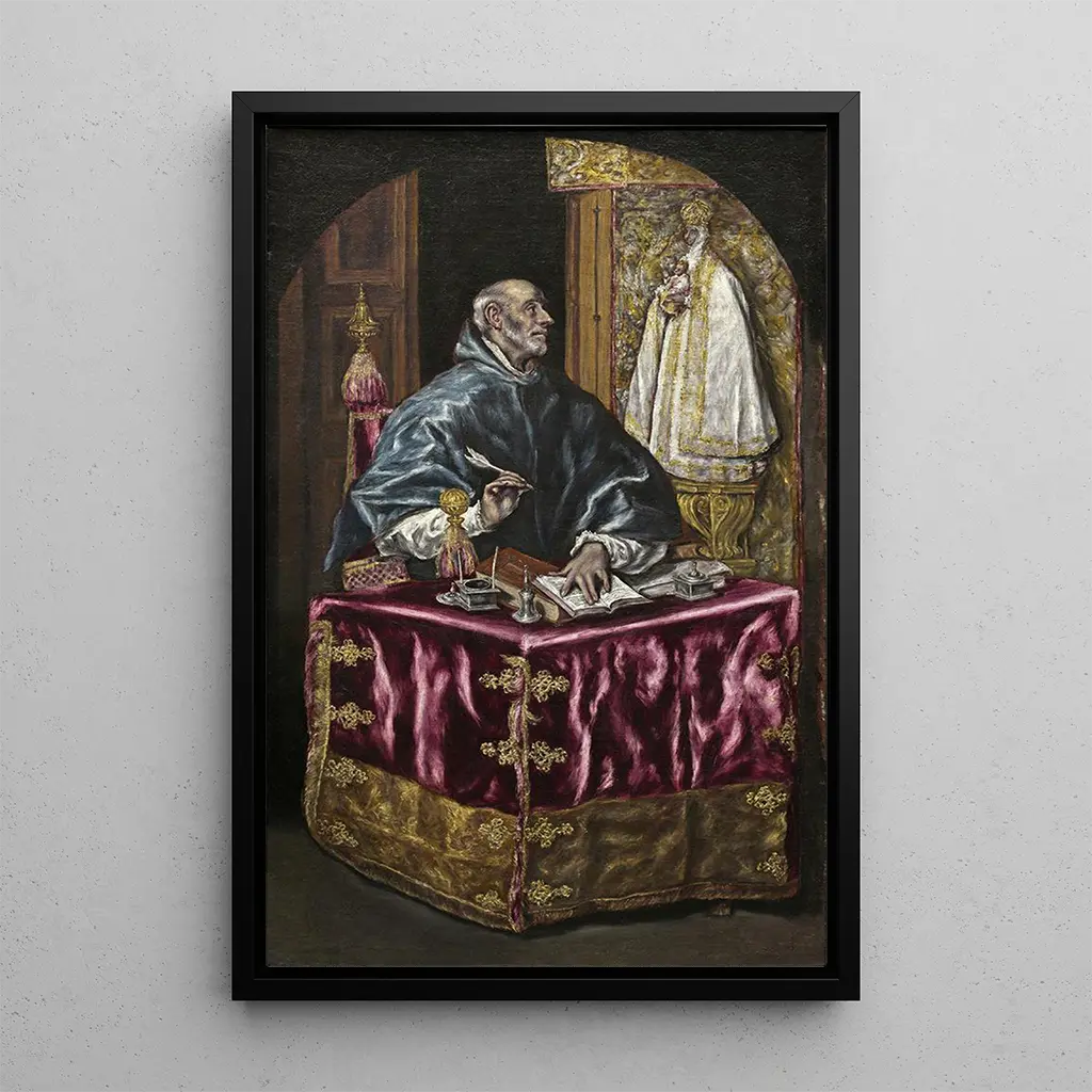 Saint Ildefonse : eine Feier des Glaubens und der Hingabe In Saint Ildefonse bietet El Greco eine beeindruckende Darstellung des Heiligen, umgeben von einem göttlichen Licht, das scheinbar von ihm selbst ausgeht. Die warmen, goldenen Farben des Gemäldes schaffen eine Atmosphäre der Gelassenheit und Ehrfurcht, während die fließenden Falten und die detaillierten Kleidungsstücke eine taktile Dimension hinzufügen. Die Haltung des Heiligen, die Hände erhoben im Gebet, ruft eine tiefe spirituelle Verbindung hervor und lädt den Betrachter ein, diesen Moment mystischer Ekstase zu teilen. Das Gesamtwerk strahlt eine emotionale Kraft aus, die das einfache Porträt übertrifft und zu einer wahren Ode an den Glauben wird. El Greco : ein Pionier der spirituellen kunst El Greco, eine ikonische Figur der spanischen Renaissance, verstand es, Tradition und Innovation in seinen werken zu vereinen. Ursprünglich aus Kreta stammend, wurde er vom byzantinischen kunststil beeinflusst, bevor er sich in Spanien niederließ, wo er seinen eigenen einzigartigen stil entwickelte. Saint Ildefonse, geschaffen am Ende des 16. Jahrhunderts, zeugt von seinem Interesse an religiösen und mystischen Themen. Der künstler hat es verstanden, das Wesen der Spiritualität durch verlängerte Figuren und eine mutige Nutzung des Lichts einzufangen. Sein Erbe besteht fort, inspiriert Generationen von künstlern und macht ihn zu einer unverzichtbaren Figur in der kunstgeschichte. Eine dekorative anschaffung mit vielfältigen vorteilen Der kunstdruck von Saint Ildefonse ist eine perfekte Wahl für diejenigen, die ihre inneneinrichtung mit einem bedeutungsvollen und emotionalen werk bereichern möchten. Ob in einem meditationsraum, einem büro oder einem wohnzimmer, dieses bild bringt eine note von spiritualität und eleganz. Die qualität des kunstdrucks garantiert eine bemerkenswerte detailtreue des originalwerks, sodass die meisterschaft von El Greco voll zur geltung kommt. Mit seiner ästhetischen anziehungskraft und seiner fähigkeit, zum nachdenken anzuregen, wird diese leinwand zu einem wahren dekorativen highlight, das Ihren raum in einen ort des friedens und der inspiration verwandelt.