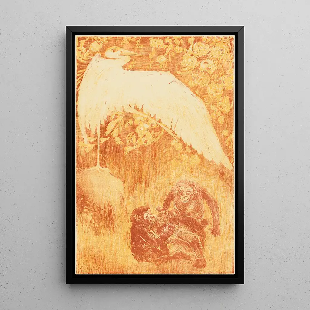 Gemälde Heron mit drei Affen - Theo van Hoytema | Kunstdruck