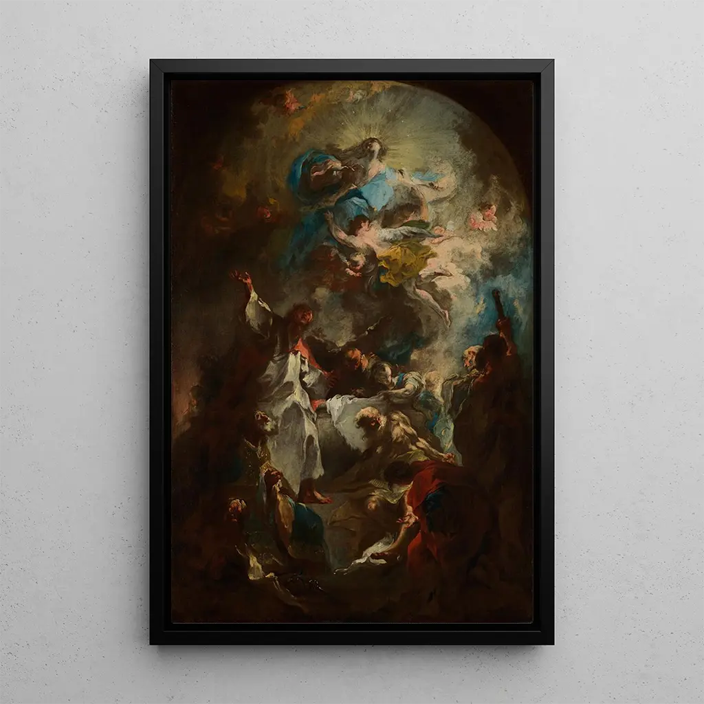 L'Assomption de Marie, ein ikonisches Werk von Franz Anton Maulbertsch, zeichnet sich durch seine mutige Verwendung von Farbe und Licht aus. Das Gemälde zeigt einen lebendigen Himmel, in dem goldene und azurblaue Töne miteinander verschmelzen und eine himmlische Atmosphäre schaffen. Die Figuren der Jungfrau und der Engel, wunderschön dargestellt, scheinen in einer aufsteigenden Bewegung zu schweben und symbolisieren die geistige Erhebung. Die Technik von Maulbertsch, gekennzeichnet durch dynamische Pinselstriche und eine harmonische Komposition, lädt zu einer tiefen und emotionalen Betrachtung ein. Jedes Detail, von den Falten der Gewänder bis zu den Ausdrücken, trägt zum Staunen bei, das diese heilige Szene hervorruft.