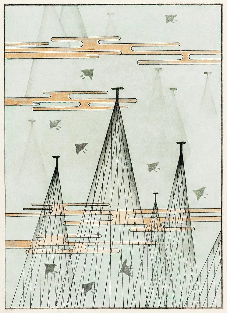 Gemälde Himmelslandschaft mit fliegenden Vögeln - Watanabe Seitei | Kunstdruck