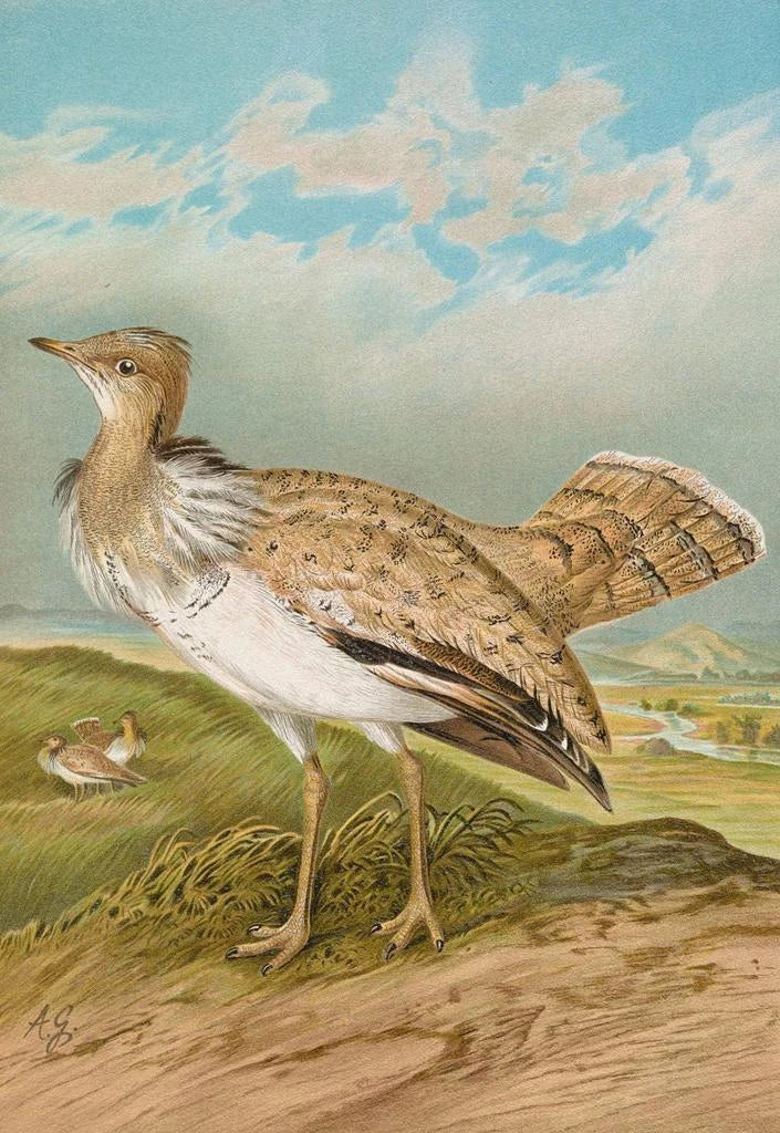 Die kunstdruck Houbara Macqueeni Gray, geschaffen von Johann Friedrich Naumann, ruft die wilde Schönheit und die Zartheit der Tierwelt hervor. Dieses Gemälde, reich an Details, hebt die Nuancen des Gefieders des Vogels hervor, das zwischen erdigen Tönen und leuchtenden Schattierungen schwankt. Die feine Aquarelltechnik verleiht dem Werk eine lebendige und pulsierende Atmosphäre, die fast greifbar ist. Die zarten Züge des Houbara, präzise eingefangen, laden den Betrachter ein, in eine natürliche Welt einzutauchen, in der jede Feder eine Geschichte zu erzählen scheint.