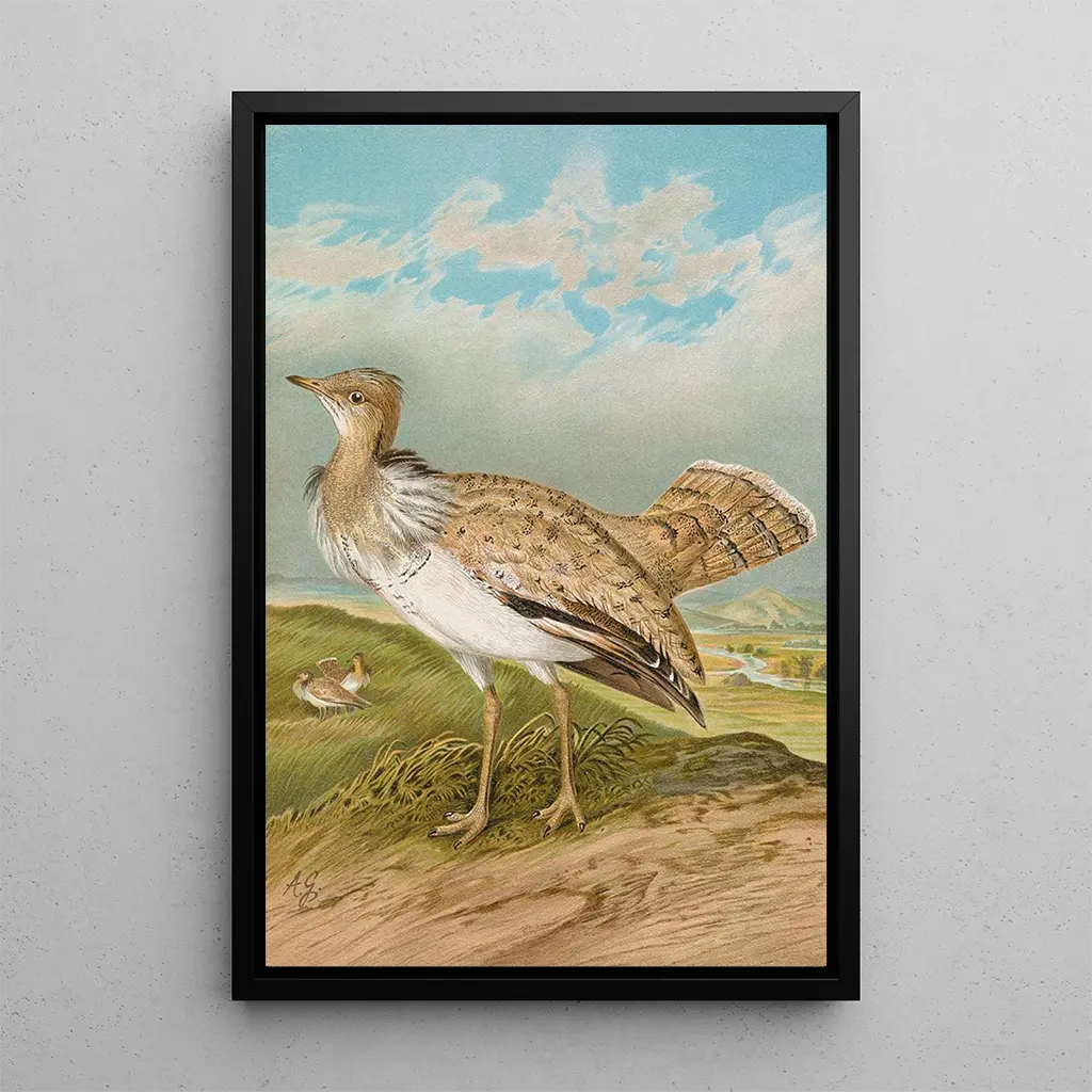 Der kunstdruck des Gemäldes Houbara Macqueeni Gray ist ein dekoratives Stück, das Ihr Interieur bereichern wird, sei es im Wohnzimmer, Büro oder Schlafzimmer. Die Druckqualität garantiert eine Farbtreue und Detailgenauigkeit des Originalwerks, was einen unbestreitbaren ästhetischen Reiz bietet. Durch die Integration dieses Leinwandbildes in Ihre Dekoration bringen Sie einen Hauch von Natur und Raffinesse in Ihr Zuhause und regen gleichzeitig Gespräche über Kunst und Biodiversität an. Dieses Gemälde ist nicht nur ein dekoratives Element, sondern auch eine Feier der ornithologischen Schönheit.