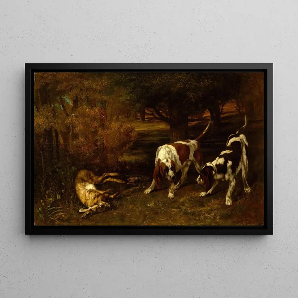 Kunstdruck | Jagdhunde mit totem Hasen - Gustave Courbet