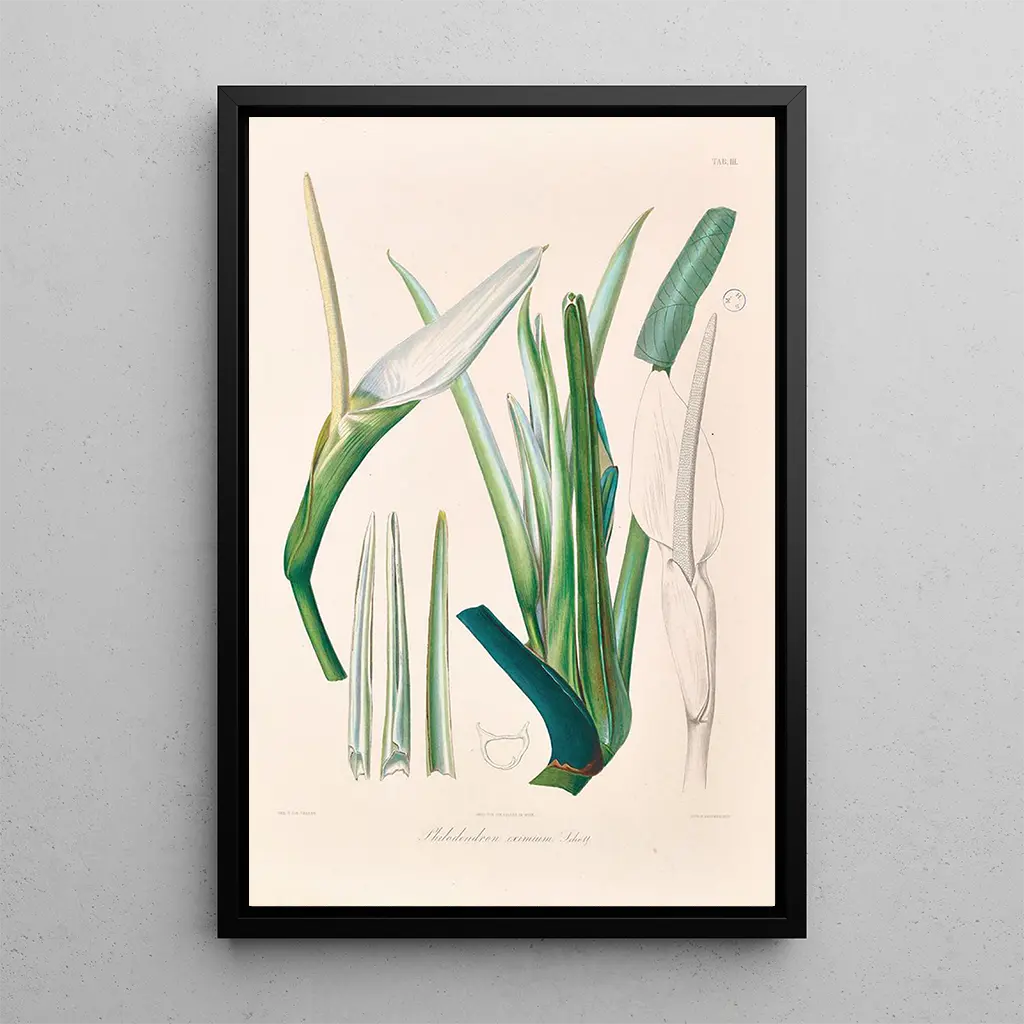 Icones Aroidearum Pl03 : eine Symphonie aus Formen und Farben Die kunstdruck Icones Aroidearum Pl03 lädt uns ein, eine reiche und vielfältige Pflanzenwelt zu entdecken. Dieses Werk von Heinrich Wilhelm Schott hebt die Arum-Pflanzen in ihrer ganzen Pracht hervor und zeigt organische Formen sowie leuchtende Nuancen. Die lebendigen Farbtöne, die von Grün bis Gelb reichen, schaffen einen beeindruckenden Kontrast, der sofort ins Auge fällt. Die Gravurtechnik, präzise und detailliert, ehrt die Schönheit dieser Pflanzen und vermittelt gleichzeitig eine ruhige, kontemplative Atmosphäre. Jedes Element dieses Gemäldes scheint vor eigenem Leben zu vibrieren und den Betrachter ins Herz der Natur zu versetzen. Heinrich Wilhelm Schott : Kunst im Dienste der Wissenschaft Heinrich Wilhelm Schott, Botaniker und Illustrator, prägte das 19. Jahrhundert durch seine Beiträge zur botanischen Illustration. Seine Werke, darunter Icones Aroidearum, spiegeln eine Leidenschaft für tropische Flora wider und zeigen den Wunsch, seine Entdeckungen zu teilen. Beeinflusst von den botanischen Expeditionen seiner Zeit, konnte Schott wissenschaftliche Präzision mit ästhetischer Gestaltung verbinden, wodurch seine Illustrationen zu Referenzen in diesem Bereich wurden. Seine Arbeit hat nicht nur das Wissen über Arum-Pflanzen bereichert, sondern auch das Bewusstsein für die Schönheit dieser oft vernachlässigten Pflanzen geschärft. Eine dekorative Anschaffung mit vielfältigen Vorzügen Der kunstdruck Icones Aroidearum Pl03 ist eine kluge dekorative Wahl für alle, die ihrer Einrichtung einen Hauch Natur verleihen möchten. Ob im Wohnzimmer, im Büro oder im Schlafzimmer, dieses Bild fügt sich harmonisch in verschiedene Einrichtungsstile ein. Die Druckqualität garantiert eine detailgetreue Wiedergabe des Originalwerks, während seine ästhetische Anziehungskraft das Interesse der Besucher wecken wird. Mit dieser Leinwand wählen Sie ein Stück, das natürliche Schönheit und künstlerisches Erbe vereint und Ihren Raum in einen Ort der Ruhe und Inspiration verwandelt.