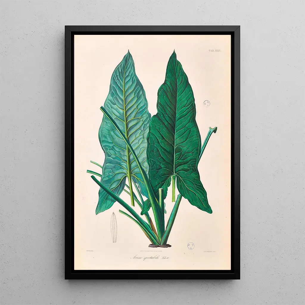 Der kunstdruck "Icones Aroidearum Pl31" ist ein dekoratives stück, das jeden raum bereichern kann, sei es ein wohnzimmer, ein büro oder ein schlafzimmer. Seine ästhetische anziehungskraft, verbunden mit der qualität des druckes, macht ihn zur idealen wahl für alle, die ihrer einrichtung einen touch von natur verleihen möchten. Die farbtreue und die details lassen die leidenschaft Schotts für die pflanzen spüren und bieten gleichzeitig ein werk, das neugierde und bewunderung weckt. Diesen leinwanddruck aufzuhängen bedeutet, die schönheit der botanik in den alltag zu holen und das erbe eines außergewöhnlichen künstler zu feiern.