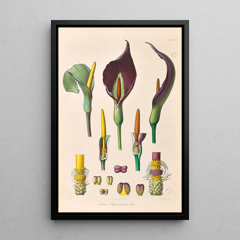 Icones Aroidearum Pl35 : eine Feier der botanischen Vielfalt Das Werk "Icones Aroidearum Pl35" von Heinrich Wilhelm Schott ist eine faszinierende Darstellung der Vielfalt der Araceae-Pflanzen. Mit lebendigen Farben und detaillierten Illustrationen lädt diese botanische Abbildung zu einer visuellen Erkundung der Formen und Texturen der Blätter ein. Die von Schott verwendete Gravurtechnik ermöglicht es, die Zartheit der Nerven und die Helligkeit der Grüntöne einzufangen, wodurch eine Atmosphäre entsteht, die sowohl wissenschaftlich als auch poetisch ist. Jedes Element ist sorgfältig angeordnet und bietet eine harmonische Komposition, die das Auge anzieht und die Fantasie anregt. Heinrich Wilhelm Schott : Pionier der illustrierten Botanik Heinrich Wilhelm Schott, österreichischer Botaniker des 19. Jahrhunderts, ist bekannt für seine bedeutenden Beiträge zur Erforschung tropischer Pflanzen. Sein Werk ist Teil der Bewegung der illustrierten Botanik, die darauf abzielt, die florale Biodiversität durch präzise und künstlerische Darstellungen zu dokumentieren. Beeinflusst von den botanischen Expeditionen seiner Zeit, widmete Schott seine Karriere der Erforschung der Araceae, einer faszinierenden Pflanzenfamilie. Seine Arbeit hat nicht nur das wissenschaftliche Wissen bereichert, sondern auch zahlreiche Künstler und Naturforscher inspiriert, was ihn zu einer unverzichtbaren Figur seiner Epoche macht. Eine dekorative Anschaffung mit vielfältigen Vorteilen Der kunstdruck von "Icones Aroidearum Pl35" ist eine ideale Wahl, um verschiedene Räume wie Wohnzimmer, Büro oder Schlafzimmer zu verschönern. Seine Druckqualität garantiert eine Treue zu den Originaldetails, sodass die Schönheit dieses botanischen Werks voll zur Geltung kommt. Durch die Integration dieses Bildes in Ihre Dekoration bringen Sie einen Hauch von Eleganz und Natur in Ihr Zuhause. Die ästhetische Anziehungskraft dieses Leinwandbildes liegt in seiner Fähigkeit, Gespräche anzuregen und gleichzeitig eine beruhigende und inspirierende Atmosphäre zu schaffen.