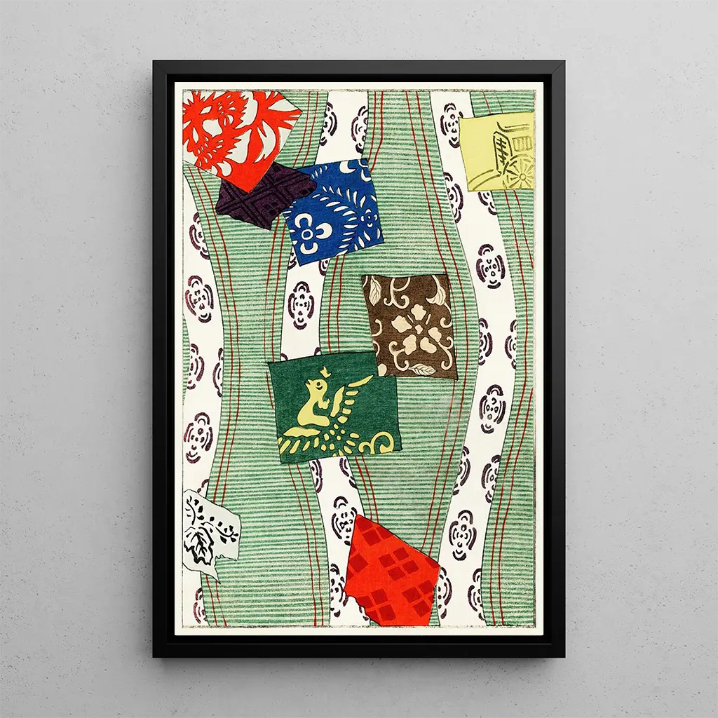 Der Kunstdruck der Illustration japanischer Muster ist ein dekoratives Stück, das sich perfekt in verschiedene Räume integriert, sei es im Wohnzimmer, Büro oder Schlafzimmer. Seine Druckqualität und die Treue zu den Originalwerken garantieren eine elegante und zeitlose Ästhetik. Mit diesem Leinwandbild bringen Sie einen Hauch von Authentizität und Kultur in Ihr Zuhause und schaffen gleichzeitig eine beruhigende und inspirierende Atmosphäre. Die visuelle Anziehungskraft dieses Werks macht es zu einer idealen Wahl für alle, die ihre Dekoration mit einem Stück bereichern möchten, das eine Geschichte erzählt und die Schönheit Japans widerspiegelt.