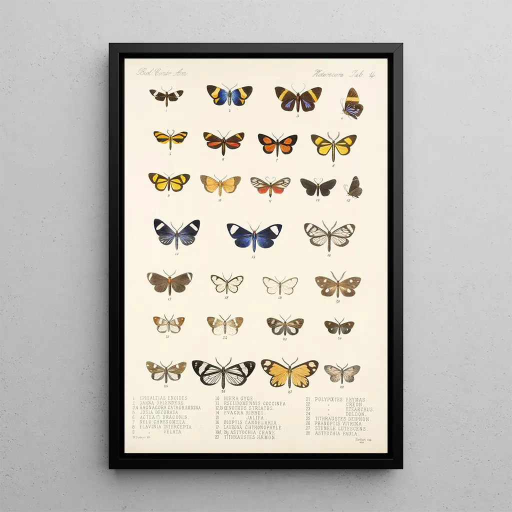 Insecta Lepidoptera Heterocera Pl 014 : ein farbenfroßer Tanz der Nachtfalter Das Werk "Insecta Lepidoptera Heterocera Pl 014" von Frederick DuCane Godman ist eine wahre Feier der Biodiversität. Dieses Gemälde, reich an Details, zeigt eine Vielzahl von Nachtfaltern, die alle sorgfältig mit wissenschaftlicher Präzision dargestellt sind. Die lebendigen Farben, die von leuchtendem Gelb bis zu tiefem Blau reichen, schaffen eine Atmosphäre, die sowohl faszinierend als auch beruhigend ist. Die Aquarelltechnik, meisterhaft angewandt, ermöglicht es, die Zartheit der Flügel und die Komplexität der Muster wiederzugeben und den Betrachter in eine Welt eintauchen zu lassen, in der die Natur herrscht. Frederick DuCane Godman: ein Pionier der künstlerischen Entomologie Frederick DuCane Godman, britischer Naturforscher und Entomologe des 19. Jahrhunderts, verstand es, Wissenschaft und Kunst in seinen Werken zu verbinden. Beeinflusst von den Entdeckungen seiner Zeit, widmete er sein Leben der Untersuchung der Insekten, insbesondere der Schmetterlinge. Seine Arbeit hat nicht nur das wissenschaftliche Wissen bereichert, sondern auch den Weg für eine neue Form der naturalistischen Kunst geebnet. "Insecta Lepidoptera Heterocera Pl 014" ist Teil einer Serie, die sein Engagement für den Schutz der Biodiversität und seine Liebe zur Schönheit der Insekten widerspiegelt. Godman bleibt eine ikonische Figur, deren Erbe in der Welt der Kunst und Wissenschaft weiterlebt. Eine dekorative Anschaffung mit vielfältigen Vorzügen Der kunstdruck von "Insecta Lepidoptera Heterocera Pl 014" ist ein dekoratives Stück, das jeden Raum bereichern wird. Ob im Wohnzimmer, im Büro oder im Schlafzimmer, dieses Gemälde zieht den Blick auf sich und weckt Bewunderung. Die Druckqualität garantiert eine Farbtreue und Detailgenauigkeit des Originalwerks, sodass die einzigartige Ästhetik von Godman voll zur Geltung kommt. Mit diesem Leinwandbild in Ihrer Dekoration bringen Sie einen Hauch von Natur und Raffinesse in Ihr Zuhause und feiern gleichzeitig die Schönheit der Nachtfalter.