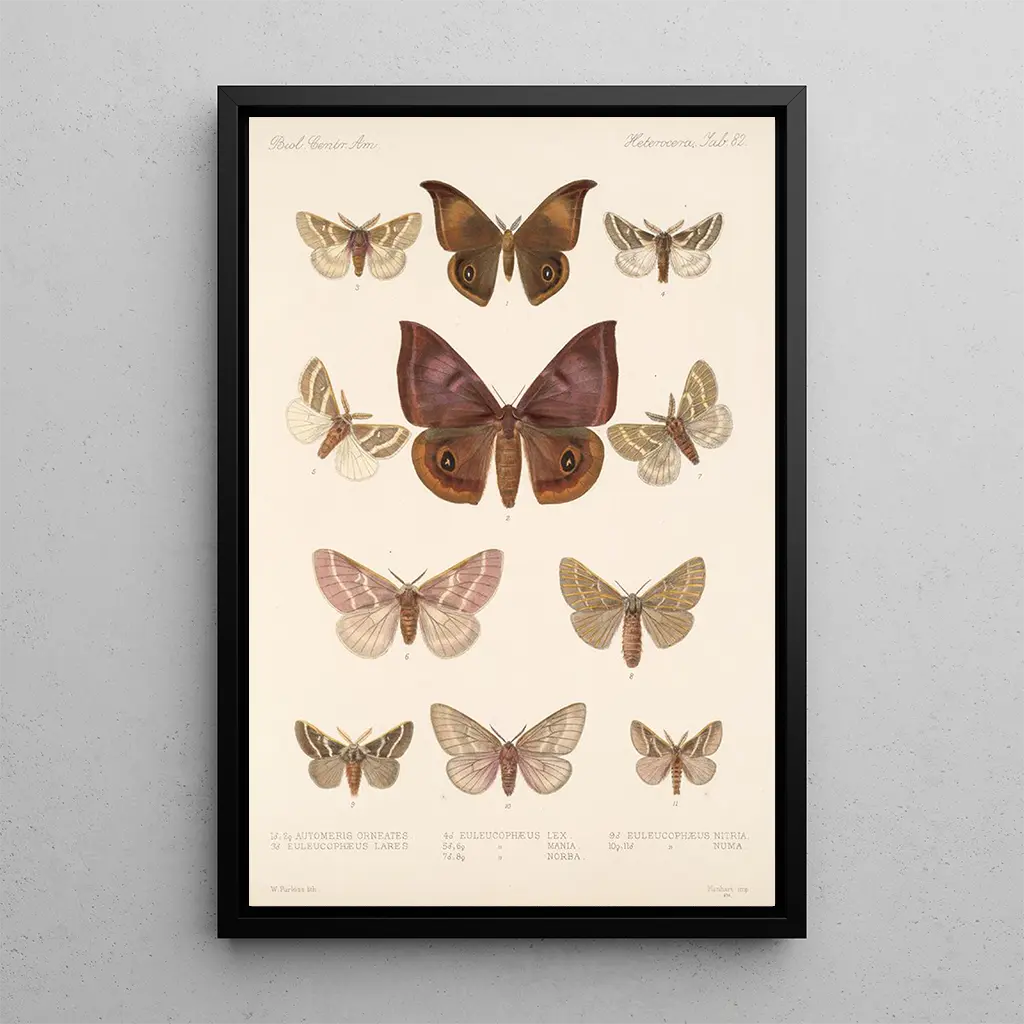 „Insekta Lepidoptera Heterocera Pl 082“ von Frederick DuCane Godman ist ein Kunstdruck, der den Betrachter in die zauberhafte Welt der Nachtfalter eintauchen lässt. Dieser Kunstdruck hebt Details mit bemerkenswerter Präzision hervor, bei denen jedes Muster auf den Flügeln sorgfältig wiedergegeben wird. Die warmen, erdigen Farben, kombiniert mit Akzenten in Blau und Violett, schaffen eine Atmosphäre, die sowohl geheimnisvoll als auch fesselnd ist. Die Aquarelltechnik, die mit Feinheit eingesetzt wird, verleiht jedem Insekt eine fast ätherische Leichtigkeit, als ob sie in der Luft schweben. Dieses Bild lädt dazu ein, die verborgene Schönheit der Nacht zu entdecken.