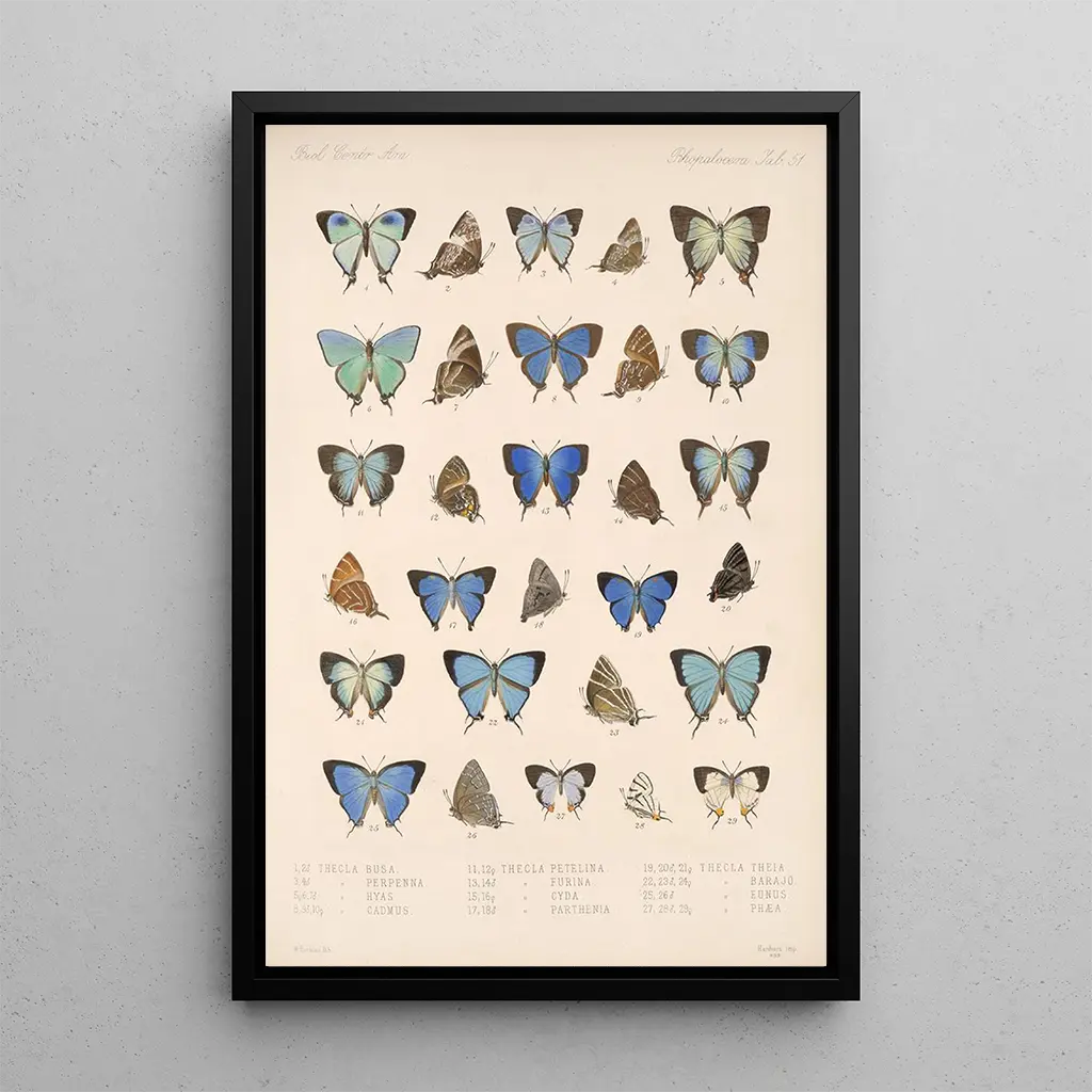 Insecta Lepidoptera Rhopalocera Pl 052 : eine Hommage an die Schönheit der Schmetterlinge Das Werk "Insecta Lepidoptera Rhopalocera Pl 052" von Frederick DuCane Godman ist eine faszinierende Darstellung der Vielfalt der Schmetterlinge. Mit leuchtenden Farben und feinen Details vermittelt diese kunstdruck eine reiche und lebendige Naturwelt. Die zarten Tönungen der Flügel, die von tiefem Blau bis zu leuchtendem Gelb reichen, werden durch eine raffinierte Aquarelltechnik hervorgehoben. Die Atmosphäre, die von diesem Gemälde ausgeht, ist sowohl beruhigend als auch fesselnd und lädt den Betrachter ein, in die zarte Welt der Lepidoptera einzutauchen. Frederick DuCane Godman : ein Pionier der künstlerischen Entomologie Frederick DuCane Godman, britischer Naturforscher und künstler des 19. Jahrhunderts, verstand es, Wissenschaft und Kunst in seinen werken zu vereinen. Beeinflusst von den Entdeckungen seiner Zeit, widmete er einen großen Teil seines Lebens der Untersuchung der Insekten, insbesondere der Schmetterlinge. Seine arbeit war wesentlich für die klassifikation der arten und trug zum aufstieg der modernen entomologie bei. Als illustrator konnte Godman die Schönheit und Komplexität der Lepidoptera einfangen, wodurch seine werken in diesem bereich Referenzcharakter erhielten. Seine leidenschaft für die natur und sein detailverliebtes arbeiten machen ihn zu einer unverzichtbaren figur der wissenschaftlichen kunst. Eine dekorative anschaffung mit vielfältigen vorteilen Der kunstdruck von "Insecta Lepidoptera Rhopalocera Pl 052" ist ein ideales dekoratives stück für jeden innenraum. Ob im wohnzimmer, büro oder schlafzimmer, dieses bild verleiht jedem raum eine note von eleganz und ruhe. Die druckqualität garantiert eine bemerkenswerte treue zu den farben und details des originalwerks, und bietet gleichzeitig eine ästhetisch ansprechende präsentation. Durch die integration dieses bildes in ihre dekoration laden sie die natur ins haus ein und schaffen so einen harmonischen und inspirierenden raum.
