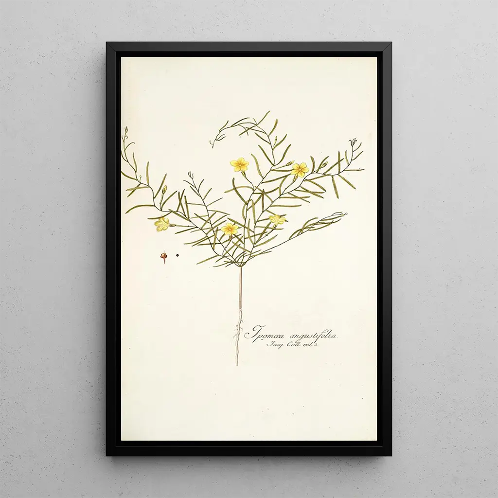 Ipomoea angustifolia : eine Hommage an die tropische Natur Das Werk "Ipomoea angustifolia" von Nikolaus Joseph Freiherr von Jacquin entführt uns in eine faszinierende botanische Welt. Dieses gemälde, reich an Details, fängt die zarte Schönheit dieser Kletterpflanze ein, mit ihren schlanken Blättern und lebendigen Blüten. Die Farben, die von tiefem Grün bis zu strahlendem Violett reichen, vermitteln eine Atmosphäre von Frische und Vitalität. Die Technik des Künstlers, die wissenschaftliche Präzision mit künstlerischer Sensibilität verbindet, lässt fast die Textur der Blätter und die Leichtigkeit der Blütenblätter spüren. Dieses Gemälde ist eine wahre Einladung, die Vielfalt der tropischen Flora zu erkunden. Nikolaus Joseph Freiherr von Jacquin : ein Pionier der künstlerischen Botanik Nikolaus Joseph Freiherr von Jacquin, Botaniker und Künstler des 18. Jahrhunderts, spielte eine Schlüsselrolle in der wissenschaftlichen Illustration von Pflanzen. Geboren 1727 in Österreich, wurde er von den Entdeckungen seiner Zeit beeinflusst, insbesondere während seiner Reisen nach Südamerika und in die Karibik. Sein Werk befindet sich an der Schnittstelle von Kunst und Wissenschaft und spiegelt die zunehmende Bedeutung der Botanik in dieser Epoche wider. Jacquin trug zum Wissen über exotische Pflanzen bei, indem er sie mit bemerkenswerter Präzision darstellte, was ihn zu einer unverzichtbaren Figur in der Geschichte der botanischen Kunst macht. Eine dekorative Anschaffung mit vielfältigen Vorzügen Der kunstdruck von "Ipomoea angustifolia" ist eine ideale dekorative Wahl, um Ihr Interieur zu bereichern, sei es im Wohnzimmer, im Büro oder im Schlafzimmer. Seine Druckqualität und seine Treue zu den Originalfarben machen es zu einem fesselnden Bild, das den Blick auf sich zieht. Dieses Gemälde bringt einen Hauch von Natur und Ruhe in Ihren Raum und feiert gleichzeitig die Schönheit der Biodiversität. Mit seinem unbestreitbaren ästhetischen Reiz wird diese Leinwand Kunstliebhaber und Botaniker gleichermaßen begeistern und Ihrer Dekoration eine elegante Note verleihen.