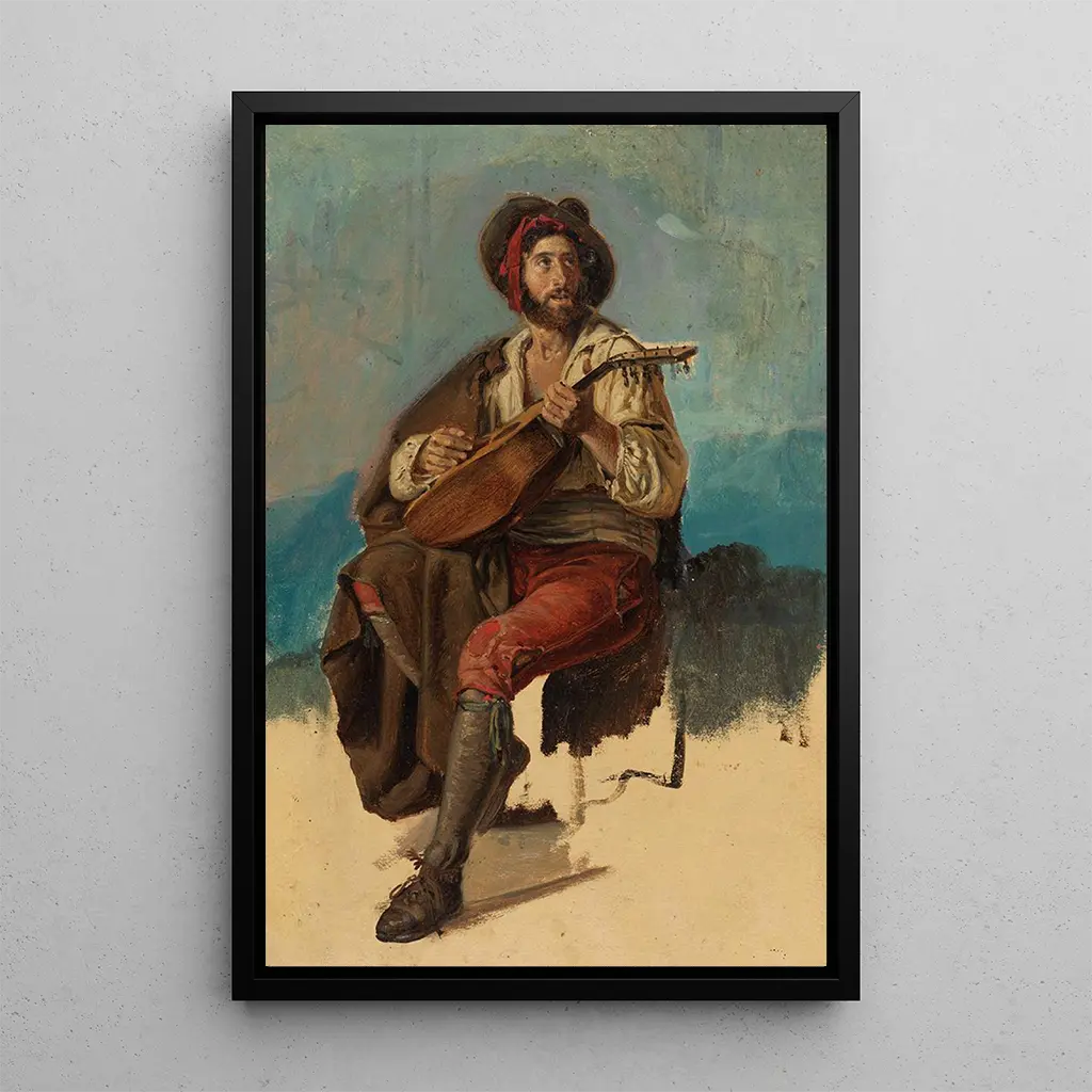 Italienischer Musiker sitzend auf Stuhl unvollendet - Johann Baptist Kirner | Kunstdruck