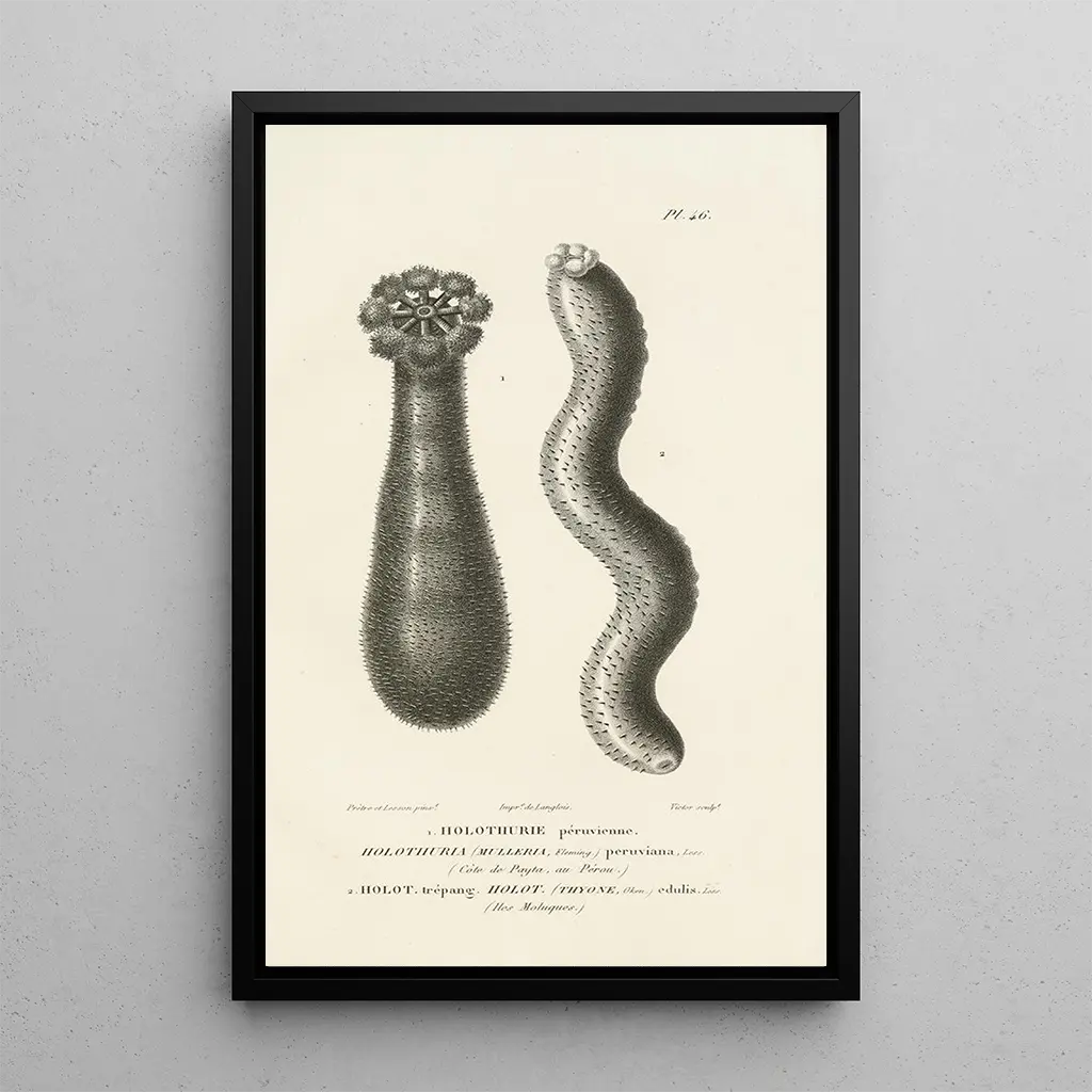 Die kunstdrucke der Centurie zoologique Pl46 von René Primevère Lesson laden dazu ein, die Vielfalt der Tierwelt durch eine sorgfältige und farbenfrohe Darstellung zu entdecken. Dieses Werk, das mit einer feinen Gravurtechnik gefertigt wurde, zeigt Tiere in fesselnden Posen und enthüllt ihre natürliche Schönheit. Die lebendigen Farben und die präzisen Details schaffen eine lebendige, fast magische Atmosphäre, die den Betrachter in eine Welt entführt, in der jede Kreatur hervorgehoben wird. Die ausgewogene und harmonische Komposition dieses Leinwandbildes zieht sofort den Blick auf sich und weckt Bewunderung.
