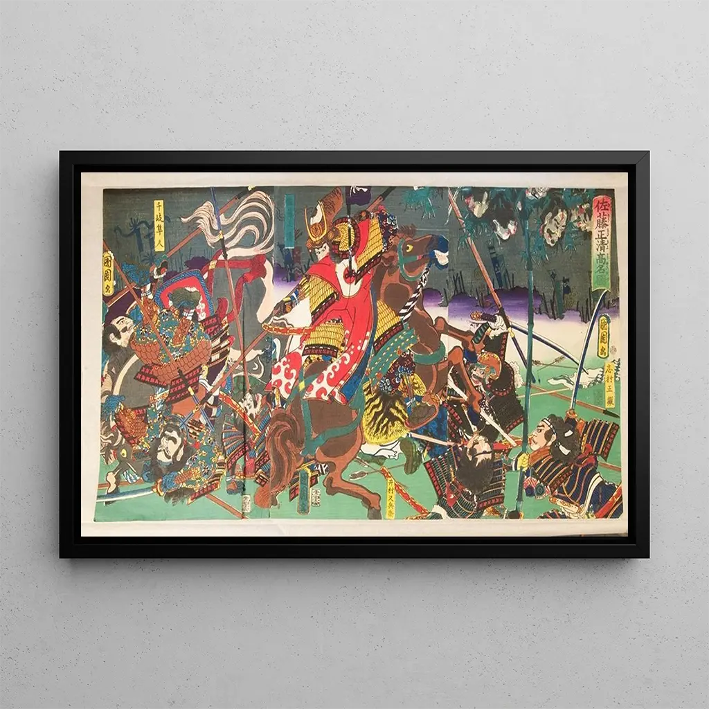 Japanischer Druck: eine Ode an die vergängliche Schönheit Der japanische Druck von Toyohara Kunichika ist ein Werk, das die Essenz der flüchtigen Schönheit einfängt. Mit seinen lebendigen Farben und seinen detaillierten Feinheiten evoziert er eine Welt, in der Natur und Kunst harmonisch verschmelzen. Die Ukiyo-e-Technik, die von Kunichika verwendet wird, ermöglicht die Schaffung dynamischer und lebendiger Kompositionen. Florale Motive und Szenen des Alltags vermischen sich, um eine poetische Atmosphäre zu schaffen, die den Betrachter einlädt, in eine Welt voller Emotionen und Empfindungen einzutauchen. Jeder Pinselstrich scheint eine Geschichte zu erzählen, eine Einladung zur Betrachtung des Vergänglichen. Toyohara Kunichika: Meister des Ukiyo-e im 19. Jahrhundert Toyohara Kunichika, aktiv während der Edo-Zeit, zählt zu den großen Meistern des japanischen druckkunst. Beeinflusst von seinen Vorgängern und der Entwicklung der japanischen Gesellschaft, hat er seinen Stil an die Geschmäcker seiner Zeit angepasst, ohne die Essenz des Ukiyo-e zu verlieren. Seine Werke, oft fokussiert auf Kabuki-Schauspieler und Szenen des urbanen Lebens, zeugen von einem tiefen Verständnis menschlicher Emotionen. Kunichika war auch ein Pionier in der Verwendung von Farbe und brachte eine neue Dimension in seine drucke. Sein Erbe besteht weiter, beeinflusst zahlreiche zeitgenössische Künstler und fasziniert Kunstliebhaber weltweit. Eine dekorative Anschaffung mit vielfältigen Vorteilen Der kunstdruck dieses japanischen druckes ist eine ideale dekorative Wahl, um Ihr Interieur zu bereichern. Ob im Wohnzimmer, im Büro oder im Schlafzimmer, dieses Bild verleiht Eleganz und Ruhe. Seine Druckqualität garantiert eine bemerkenswerte Treue zu den Originaldetails, sodass die Magie von Kunichikas Werk vollständig spürbar wird. Die ästhetische Anziehungskraft dieses Leinwandbildes liegt in seiner Fähigkeit, sich harmonisch in verschiedene Einrichtungsstile einzufügen, sei es traditionell oder modern. Gönnen Sie sich ein einzigartiges Stück, das Blicke fesselt und Gespräche anregt.