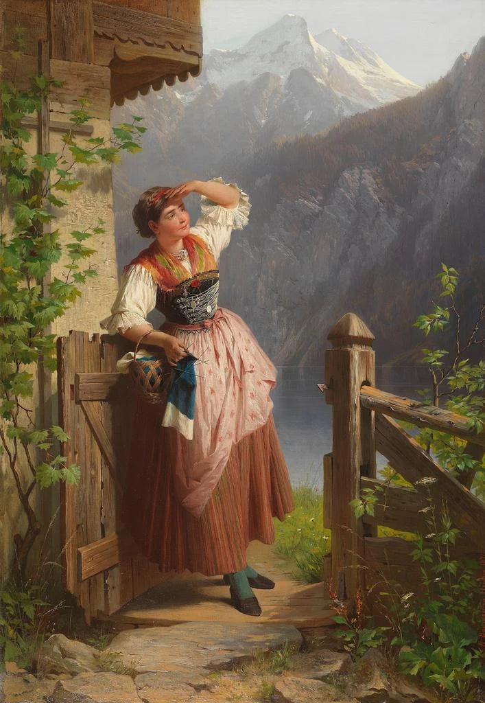 Gemälde Junge Frau beobachtend - Peter Baumgartner | Kunstdruck