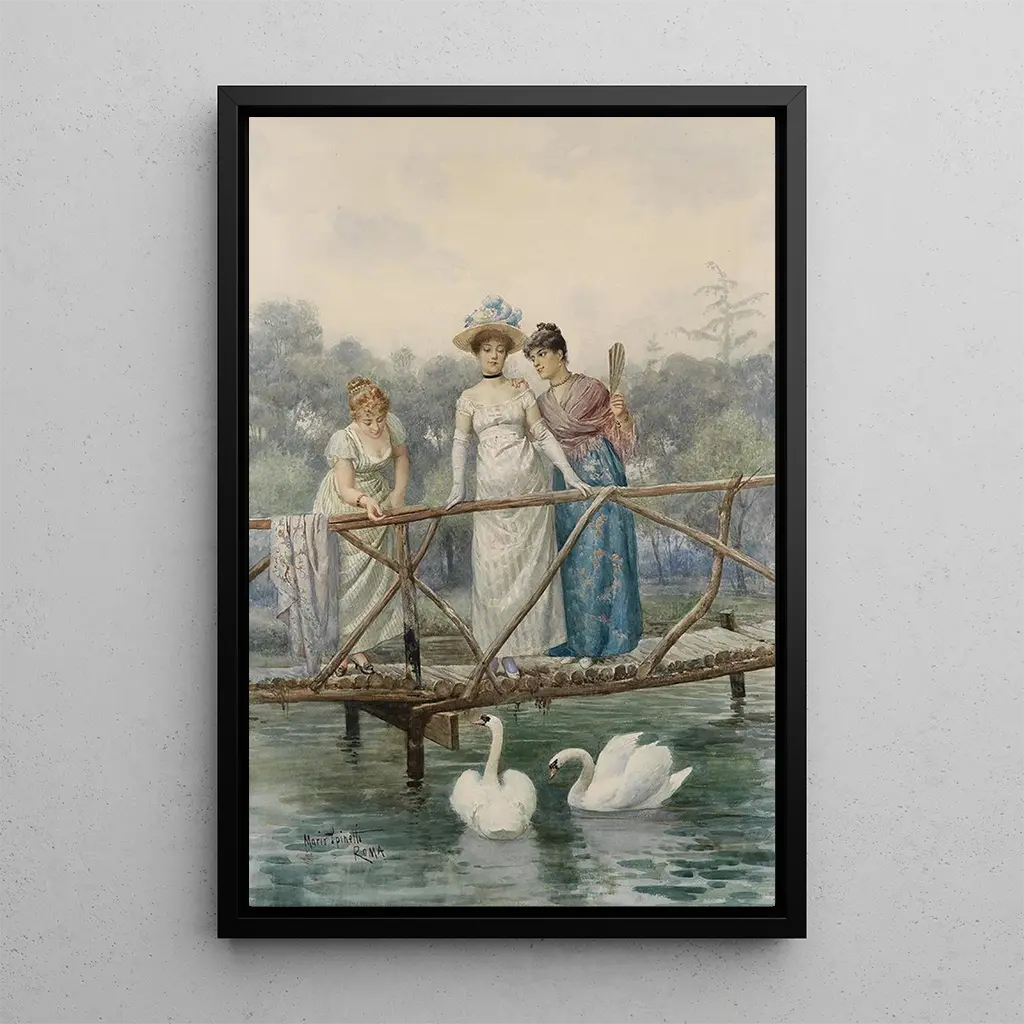 Gemälde Junge Frauen, die Schwäne füttern - Mario Spinetti | Kunstdruck