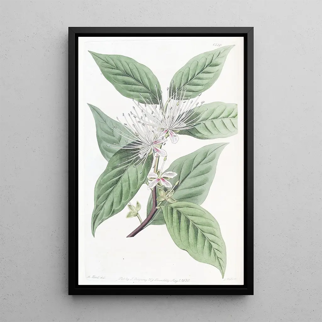 Câprier à pointe effilée : eine Ode an die zarte Natur Das Gemälde "Câprier à pointe effilée" von Sydenham Edwards ist eine wahre Feier der natürlichen Schönheit. Mit sanften Farben und detaillierten Feinheiten ruft dieses Werk die Leichtigkeit und Anmut der Pflanzen hervor. Die grünen und weißen Töne verschmelzen harmonisch und schaffen eine beruhigende Atmosphäre, die zur Flucht aus dem Alltag einlädt. Die Aquarelltechnik, meisterhaft beherrscht von Edwards, ermöglicht es, die Transparenz der Blütenblätter und die Feinheit der Blätter einzufangen und dieser ikonischen Pflanze Leben einzuhauchen. Jeder Pinselstrich scheint zu atmen und ehrt die Zartheit der Natur. Sydenham Edwards: ein Pionier der botanischen Kunst Sydenham Edwards, aktiv zu Beginn des 19. Jahrhunderts, ist bekannt für seine Arbeiten im Bereich der botanischen Illustration. Vom romantischen Bewegung beeinflusst, verstand er es, wissenschaftliche Präzision mit künstlerischer Sensibilität zu verbinden. Seine Werke, oft veröffentlicht in Fachbüchern, trugen zum Wissen über exotische Pflanzen seiner Zeit bei. Edwards reiste durch England und darüber hinaus, inspiriert von der lokalen Flora und botanischen Gärten. Sein unverwechselbarer Stil, geprägt von einer sorgfältigen Detailarbeit, machte ihn zu einer bedeutenden Figur der botanischen Kunst und hinterließ ein nachhaltiges Erbe für zukünftige Generationen. Eine dekorative Anschaffung mit vielfältigen Vorzügen Der kunstdruck des "Câprier à pointe effilée" ist ein ideales Dekorationsstück, um einen Hauch von Natur in Ihr Zuhause zu bringen. Ob im Wohnzimmer, im Büro oder im Schlafzimmer – dieses Bild fügt sich harmonisch in verschiedene Einrichtungsstile ein. Die Druckqualität garantiert eine bemerkenswerte Farbtreue und Detailgenauigkeit des Originalwerks, verbunden mit einem unbestreitbaren ästhetischen Reiz. Mit der Wahl dieses Leinwandbildes entscheiden Sie sich für ein Kunstwerk, das nicht nur Ihren Raum verschönert, sondern auch eine tiefe Verbindung zur Schönheit der natürlichen Welt evoziert.