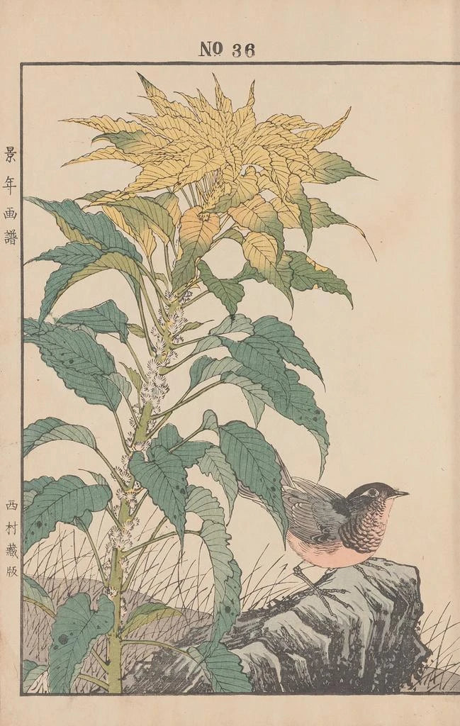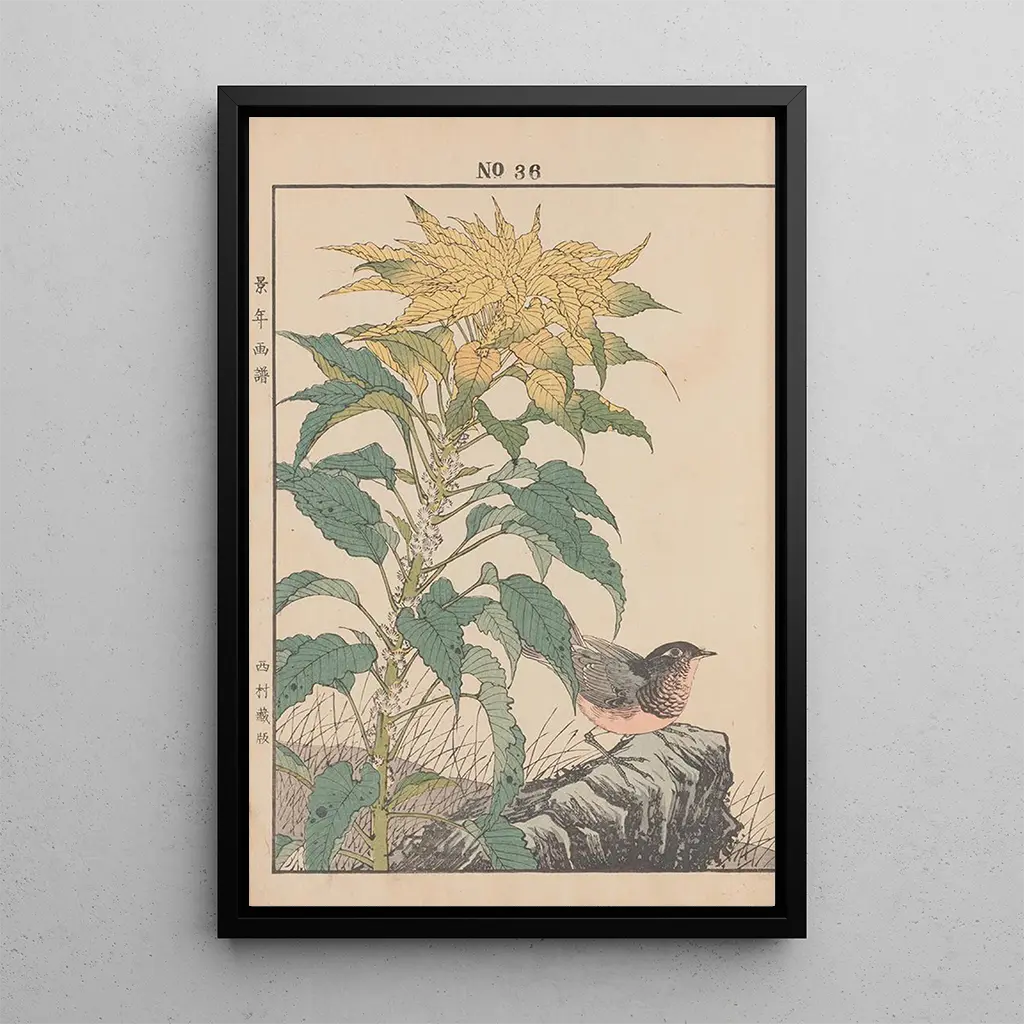 Keinen kach gafu Pl039 ist eine kunstdruck, der uns in eine Welt eintauchen lässt, in der die natur mit einer unvergleichlichen Feinfühligkeit in Szene gesetzt wird. Die sanften farben und die minutösen details der blumen und vögel schaffen eine beruhigende, fast meditative atmosphäre. Die technik des druckes auf papier, typisch für die Edo-zeit, ermöglicht es dem künstler, die vergängliche schönheit der japanischen flora und fauna einzufangen. Jedes element scheint unter dem blick zu vibrieren und lädt den zuschauer zu einer stillen und respektvollen betrachtung der natur ein.