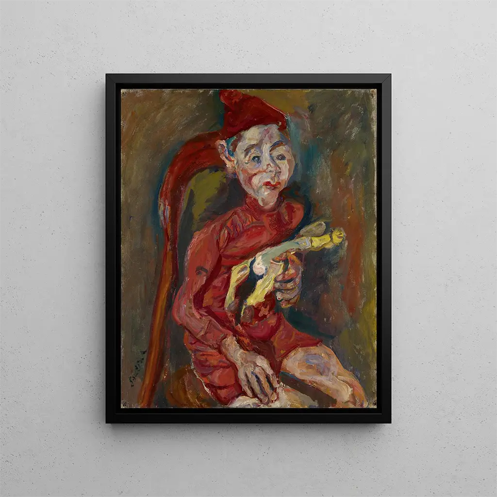 Der Stil von Chaïm Soutine, geprägt von lebendigen Farben und expressiver Gestik, findet hier eine meisterhafte Anwendung. Das Werk zeichnet sich durch verzerrte Formen und den mutigen Einsatz von Farbe aus, die der Darstellung des Kindes eine einzigartige Dynamik verleihen. Das Gesicht des jungen Protagonisten, zugleich fröhlich und nachdenklich, scheint unter dem Einfluss von Licht und Schatten zu vibrieren und schafft eine Atmosphäre, die sowohl intim als auch universell ist. Soutine beschränkt sich nicht darauf, die Realität zu reproduzieren; er interpretiert sie, verleiht ihr eine Seele und Tiefe, die zur Kontemplation einladen. Die reichen Texturen und subtilen Nuancen der Palette verstärken diesen Eindruck von Unmittelbarkeit, sodass jeder Blick eine Reise zur Authentizität der Kindheit wird.