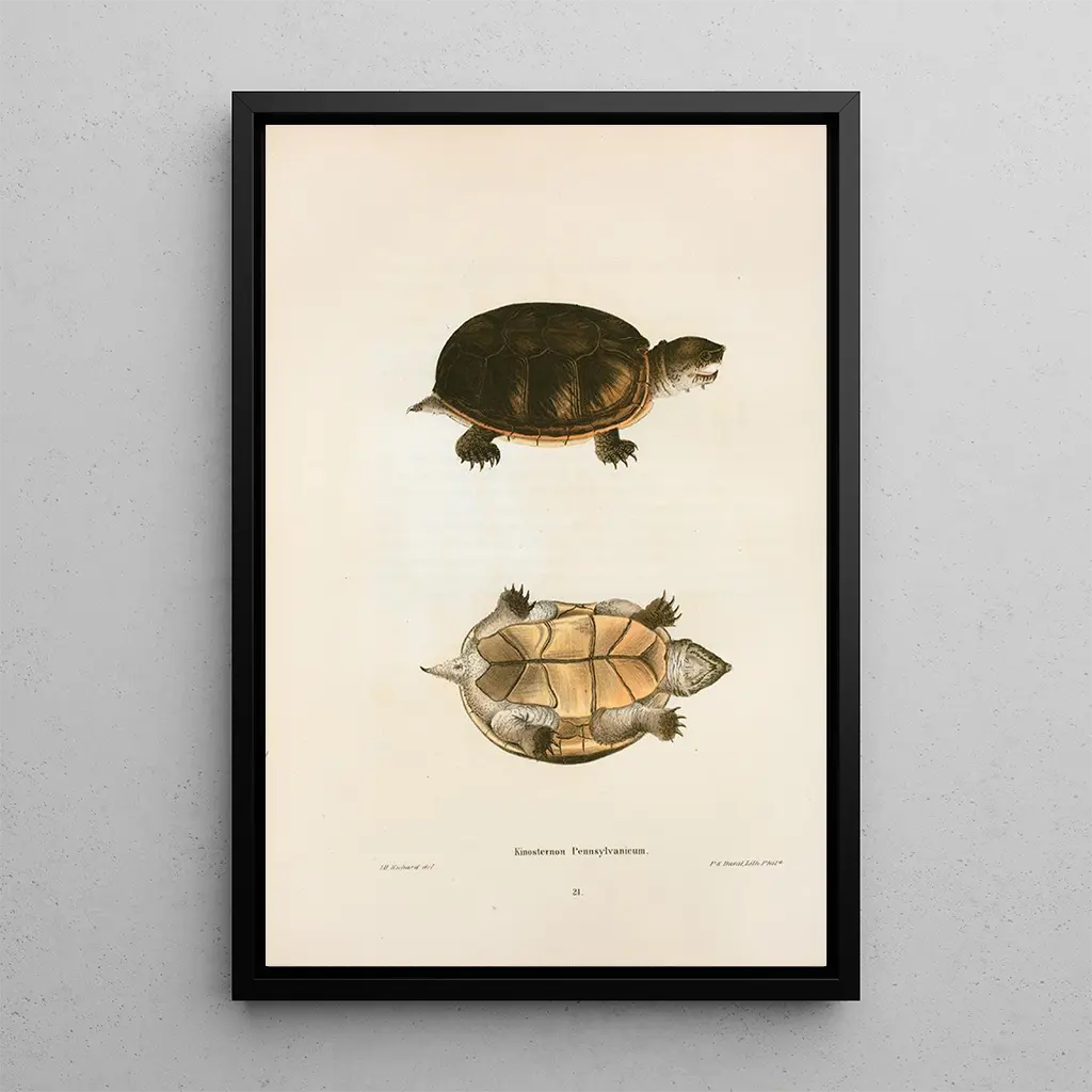 Der kunstdruck des Gemäldes Kinosternon von Pennsylvania ist ein dekoratives Stück, das jeden Raum bereichern kann, sei es ein Wohnzimmer, ein Büro oder ein Schlafzimmer. Seine Druckqualität und die Treue zu den Originalfarben machen ihn zur idealen Wahl für Naturliebhaber und Biodiversitäts-Enthusiasten. Durch die Integration dieses Bildes in Ihre Dekoration verleihen Sie Ihrem Raum eine Note von Eleganz und Gelassenheit und feiern gleichzeitig die Schönheit der Wasserwelt. Diese Leinwand, mit ihrer unbestreitbaren ästhetischen Anziehungskraft, ist eine hervorragende Möglichkeit, das Bewusstsein für den Schutz der Arten und die Bedeutung unserer natürlichen Umwelt zu fördern.