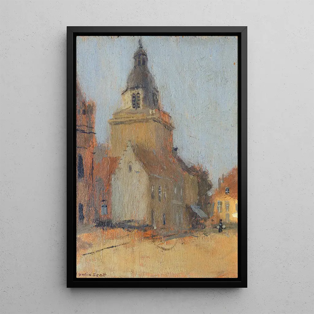 Frank Edwin Scott, aktiv gegen Ende des 19. und Anfang des 20. Jahrhunderts, ist ein amerikanischer Künstler, dessen Arbeit vom Impressionismus beeinflusst wurde. Seine Werke zeichnen sich durch eine besondere Liebe zum Detail und die Fähigkeit aus, das Licht eindrucksvoll einzufangen. Scott hat häufig Themen rund um Natur und Architektur erforscht, was ihm ermöglichte, sich in der Kunstlandschaft seiner Zeit hervorzuheben. Der Kunstdruck der Stadtpfarrkirche von Ville zeugt von seiner Fähigkeit, Szenen des Alltagslebens darzustellen und gleichzeitig Elemente von Spiritualität und Kontemplation zu integrieren.
