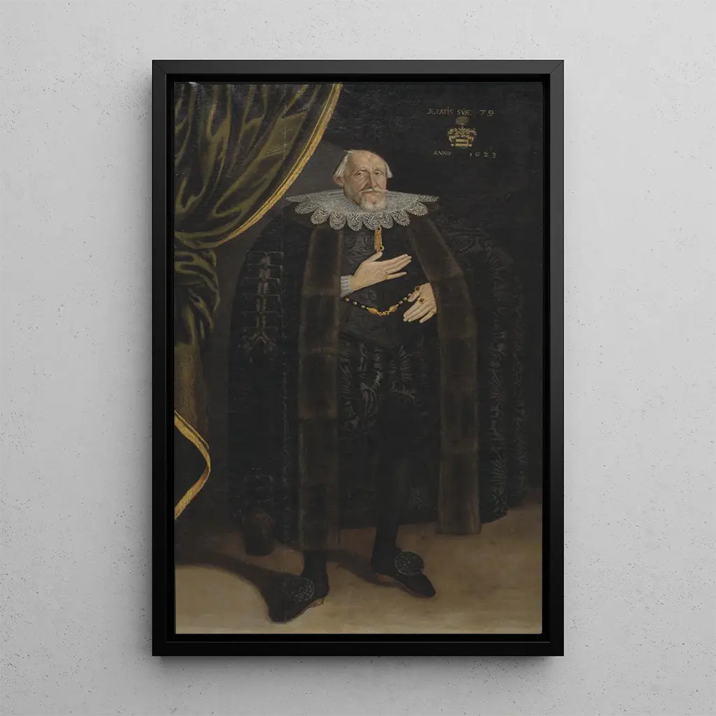 Klas Bielke de Ker : ein Porträt von Eleganz und Noblesse Das Gemälde "Klas Bielke de Ker" zeigt eine majestätische Figur, sorgfältig und elegant gekleidet. Die minutiosen Details seines Kostüms sowie der nachdenkliche Ausdruck seines Gesichts zeugen von einer außergewöhnlichen Meisterschaft in der Malerei. Die reichen und tiefgründigen Farben, kombiniert mit einer subtilen Beleuchtung, schaffen eine Atmosphäre, die sowohl feierlich als auch intim ist. Dieses Porträt beschränkt sich nicht nur auf die Darstellung einer Person; es fängt das Wesen einer Epoche ein, in der Noblesse gleichbedeutend mit Macht und Prestige war, und lädt den Betrachter ein, über die Identität und den Status seines Subjekts nachzudenken. Jacob Heinrich Elbfas : ein Porträtist des 17. Jahrhunderts Jacob Heinrich Elbfas, aktiv im 17. Jahrhundert, ist bekannt für seine Porträts, die Realismus und Raffinesse verbinden. Aufgewachsen in einem künstlerisch reichen Umfeld, wurde er von den großen Meistern seiner Zeit beeinflusst, insbesondere von flämischen und niederländischen Künstlern. Seine Werke zeichnen sich durch ihre Detailgenauigkeit und die Fähigkeit aus, die Persönlichkeit der Subjekte zu vermitteln. Elbfas konnte den Geist seiner Epoche einfangen, die von sozialen und politischen Veränderungen geprägt war, und seine Porträts bleiben wertvolle Zeugnisse der Noblesse und Bourgeoisie seiner Zeit, die einen faszinierenden Einblick in die Geschichte bieten. Eine dekorative Anschaffung mit vielfältigen Vorzügen Der kunstdruck des Gemäldes "Klas Bielke de Ker" ist ein dekoratives Element, das Ihrem Interieur eine Note von Raffinesse verleiht. Ob im Büro, im Wohnzimmer oder im Ausstellungsraum, diese Leinwand zieht den Blick auf sich und weckt Bewunderung. Die Druckqualität garantiert eine bemerkenswerte Treue zu den Nuancen und Details des Originalwerks und bereichert so Ihre Dekoration. Mit der Wahl dieses Werks investieren Sie in ein dekoratives Element, das Geschichte, Kunst und Eleganz vereint, und schaffen eine raffinierte und einladende Atmosphäre in Ihrem Wohnraum.