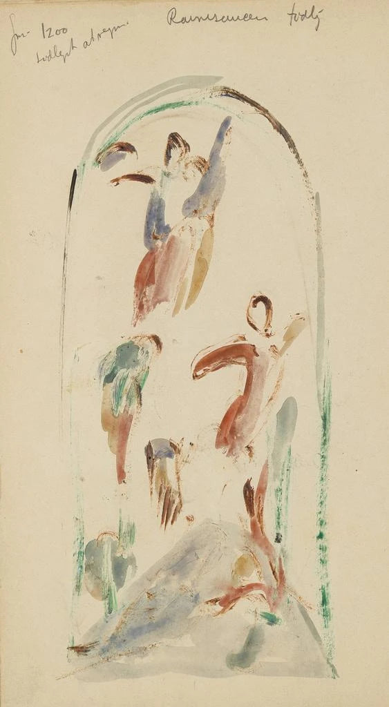 Das Werk "Studie der Komposition mit zwei schwebenden Engeln" von J A Jerichau evoziert eine ätherische Atmosphäre, in der Leichtigkeit und Anmut aufeinandertreffen. Die Engeln, zart gemalt, scheinen in einem undefinierten Raum zu schweben, ihre durchsichtigen Flügel fangen das Licht auf fast magische Weise ein. Die Pastellfarbpalette, die Nuancen von Blau und Rosa mischt, schafft ein Gefühl von Gelassenheit und Traum. Die Technik von Jerichau, gekennzeichnet durch flüssige Pinselstriche und eine sorgfältige Detailarbeit, verleiht diesem Gemälde emotionale Tiefe, die zur Kontemplation einlädt.
