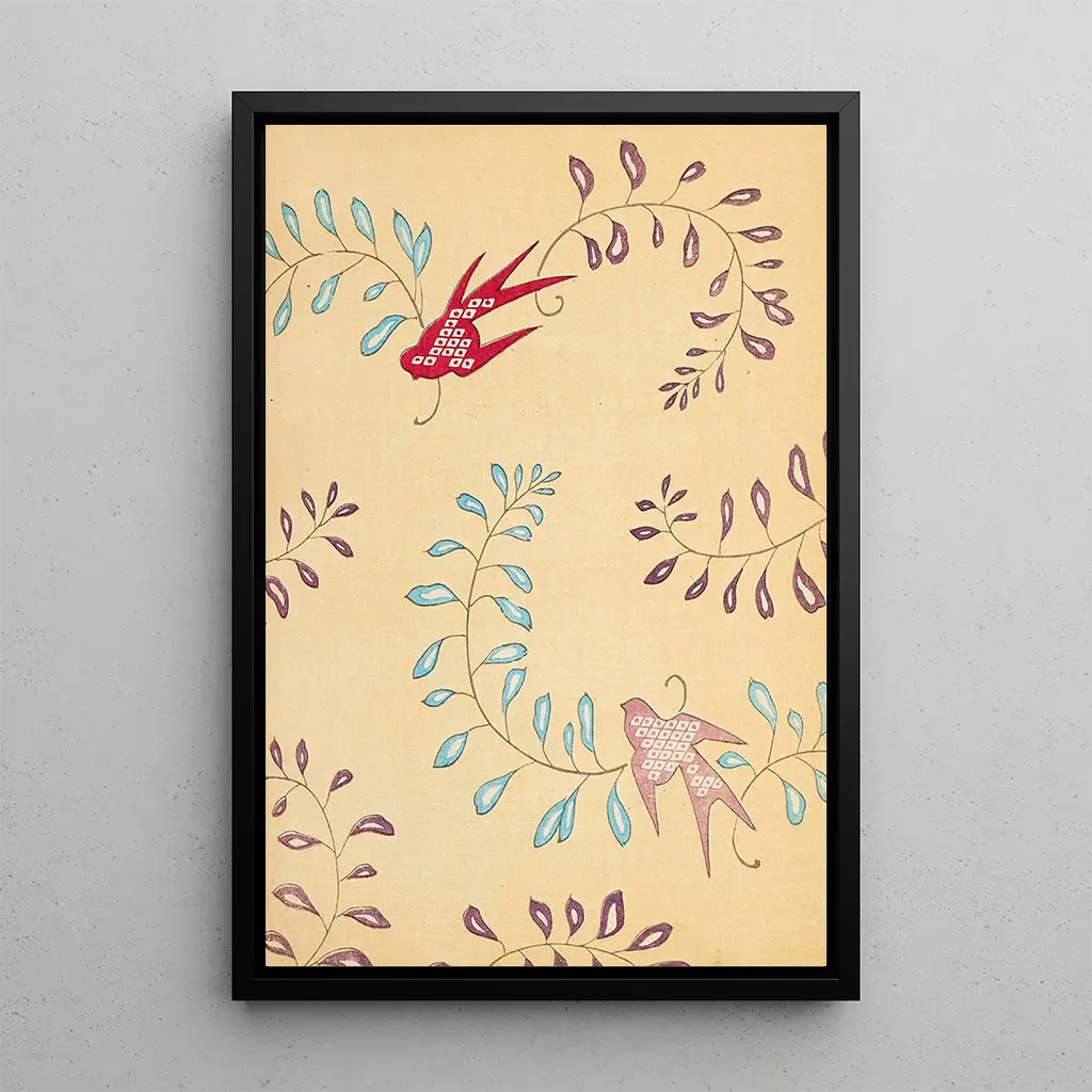 In dieser kunstdruckversion von Bijutsukai Pl42 entfaltet sich das Werk von Furuya Korin mit bemerkenswerter Feinfühligkeit. Die lebendigen Farben und die floralen Muster verschmelzen zu einer beruhigenden und kontemplativen Atmosphäre. Die Technik der Seidenmalerei, typisch für die japanische Kunst, verleiht diesem Leinwandbild eine einzigartige, fast tastbare Textur. Jedes Detail, von den Blütenblättern bis zu den Blättern, scheint unter dem Licht zu vibrieren und lädt den Betrachter ein, in eine Welt der Gelassenheit und Schönheit einzutauchen. Das Werk erinnert an einen geheimen Garten, in dem die Natur in ihrer ganzen Pracht erblüht.