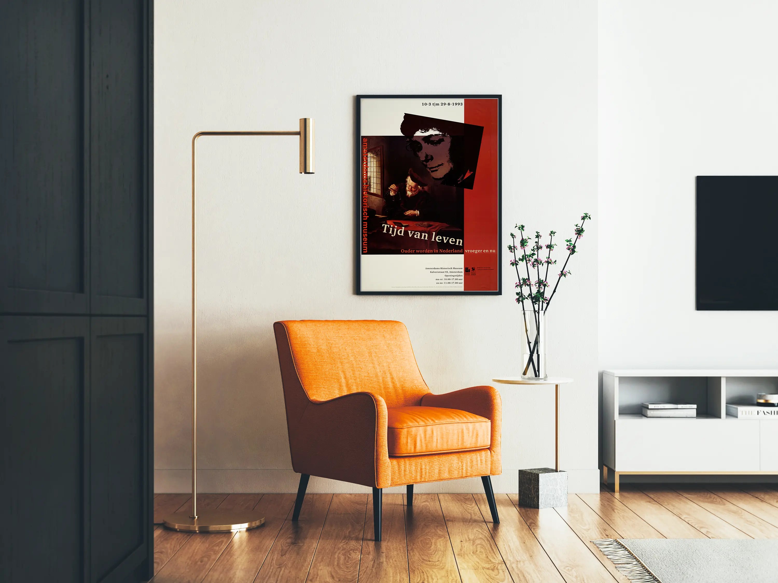 Dieses Plakat mit dem Titel 'Tijd van leven' ist ein faszinierendes Kunstwerk, das sich perfekt für eine einzigartige und durchdachte Wanddekoration eignet. Es verbindet geschickt zwei visuelle Elemente: ein dunkles Porträt eines älteren, bärtigen Mannes, konzentriert in einer Atelier- oder Studienatmosphäre, und die moderne Überlagerung einer jungen Gesichts silhouette in Schwarzweiß, im Kontrast dazu. Das dominierende Farbenspiel, das zwischen warmen Rottönen, Weiß und Schwarz variiert, schafft eine starke, zeitgenössische visuelle Wirkung, die Ihrem Raum eine einzigartige Identität verleiht. Das Plakat thematisiert tiefgründige Fragen zu Zeit und Leben, angeregt durch den Text „Tijd van leven“ – was auf Niederländisch „Lebenszeit“ bedeutet – und die Aussage „Ouder worden in Nederland vroeger en nu“ (Älter werden in den Niederlanden früher und heute). Diese Botschaft lädt zur Reflexion über das Leben, den Lauf der Zeit und die Erinnerung ein, was es zu einer idealen Wahl für diejenigen macht, die eine bedeutungsvolle und geschichtsträchtige Wanddekoration suchen. Gedruckt in herausragender grafischer Qualität, eignet sich dieses Plakat sowohl für einen klassischen Rahmen als auch für eine moderne Präsentation an einer ikonischen Wand. Sein Vintage-Stil, kombiniert mit einem zeitgenössischen Akzent, macht es passend für ein Wohnzimmer, ein Büro oder sogar einen kulturellen oder künstlerischen Raum. Die vertikalen und horizontalen Schriftzüge in klarer Typografie begleiten das Bild und verstärken den musealen Effekt des Plakats, was seinen Charakter als Sammler- oder Ausstellungsstück unterstreicht. Durch die Dekoration einer Wand mit diesem Poster bringen Sie eine künstlerische Anregung, die das Thema Altern und Erinnerung anspricht, sehr gut in Einklang mit einer intellektuellen oder inspirierenden Raumgestaltung. Kurz gesagt, dieses Plakat 'Tijd van leven' ist eine elegante, symbolische und ästhetische Wanddekoration. Es stellt eine Brücke zwischen Vergangenheit und Gegenwart dar, ideal für Räume, in denen Kunst und Reflexion aufeinandertreffen, und lässt sich perfekt mit weiteren klassischen und modernen Dekorationselementen kombinieren.