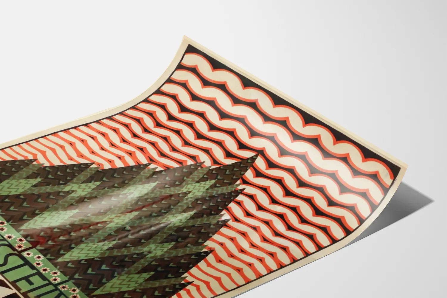 Dieses Plakat mit starkem grafischem Stil ist eine ikonische Darstellung der Jugendstilbewegung und der Secession, eines künstlerischen Stils, der den Beginn des 20. Jahrhunderts prägt. Bestehend aus einer stilisierten Pyramide mit Zickzackmustern in verschiedenen Grüntönen, fängt diese visuelle Komposition die Aufmerksamkeit durch ihr Gleichgewicht und ihre Symmetrie ein. Im Hintergrund sorgen gewellte rote und weiße Streifen für eine lebendige Dynamik, die im Kontrast zur geometrischen Strenge des Hauptmotivs steht. Der Text „Secession“, unten angebracht, mit einer kühnen, geometrischen Schriftart, unterstreicht die historische Bedeutung dieser künstlerischen Bewegung. Dieses Wandposter ist ein ideales Dekorationselement für Liebhaber von Kunst und Vintage-Design, das jedem Raum eine Note von Authentizität und eine einzigartige Atmosphäre verleiht. Ob im Wohnzimmer, Büro oder Empfangsraum – dieses Wanddekor zieht Blicke auf sich und lädt zur Betrachtung ein. Sein typisch secessionistischer Stil passt perfekt zu Interieurs mit Retro-, klassischen oder modernen Einflüssen, die einen starken künstlerischen Bezug suchen. Dieses Plakat zu präsentieren bedeutet, sich für ein dekoratives Objekt mit Geschichte zu entscheiden, das geometrische Formen und kontrastierende Farben zu einem kraftvollen visuellen Effekt verbindet. Als Kunstposter eignet sich diese Wanddekoration auch zur Inspiration für die Gestaltung thematischer Räume rund um Design und Kunstgeschichte. Das Objekt besticht durch seine Fähigkeit, Dekoration und visuelle Erzählung zu verbinden, und bietet ein bereicherndes ästhetisches Erlebnis in einem zeitgenössischen Rahmen. Durch die Integration dieses Bildes als Plakat setzen Sie sowohl auf einen prestigeträchtigen künstlerischen Stil als auch auf ein originelles Dekorationsstück, das Ihre Wände mit Charakter personalisiert.