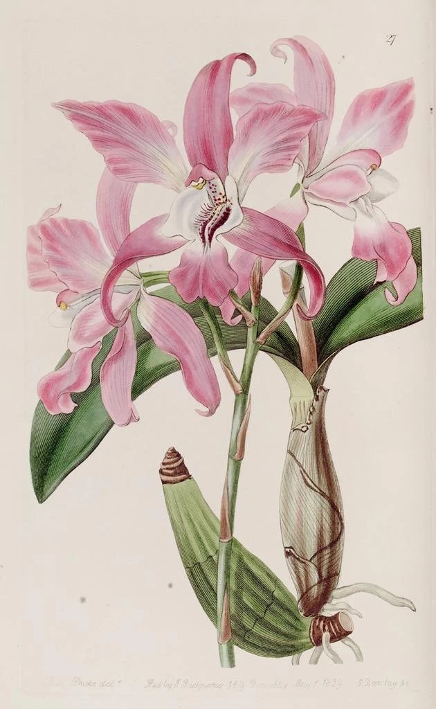 Sydenham Edwards, berühmter botanischer Illustrator des 19. Jahrhunderts, verstand es, Wissenschaft und Kunst in seinen Kreationen zu vereinen. Durch seine sorgfältige Beobachtung der Pflanzen entstanden Werke, die zu Referenzen im Bereich der botanischen Illustration wurden. „Laelia d'automne“ zeugt von seinem einzigartigen Talent, bei dem jedes Detail mit bemerkenswerter Präzision wiedergegeben wird. Seine Arbeit hat nicht nur das Wissen über Pflanzenarten bereichert, sondern auch zahlreiche Künstler und Wissenschaftler seiner Zeit beeinflusst.