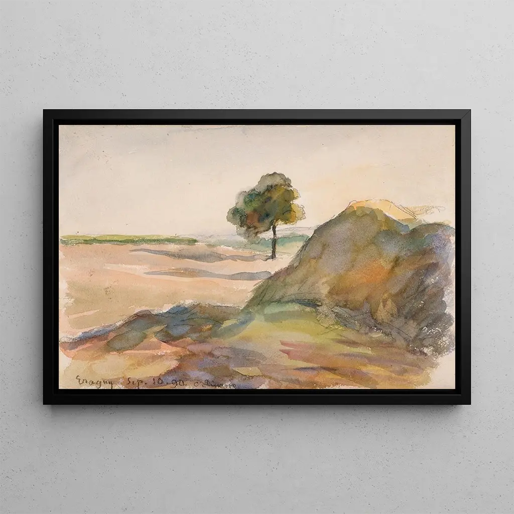 Camille Pissarro, geboren 1830 in Saint-Thomas, ist einer der einflussreichsten Künstler der impressionistischen Bewegung. Sein Werk zeichnet sich durch eine besondere Aufmerksamkeit für Licht und Farbe aus, ebenso wie durch den Wunsch, das tägliche Leben und ländliche Landschaften darzustellen. Pissarro spielte eine Schlüsselrolle bei der Entwicklung des Impressionismus und arbeitete mit Künstlern wie Monet und Cézanne zusammen. "Paysage à Éragny" zeugt von seinem Engagement, die vergängliche Schönheit der Natur einzufangen, während er die Effekte des Lichts auf die Landschaft erforscht. Sein Erbe besteht weiter und inspiriert Generationen von Künstlern.