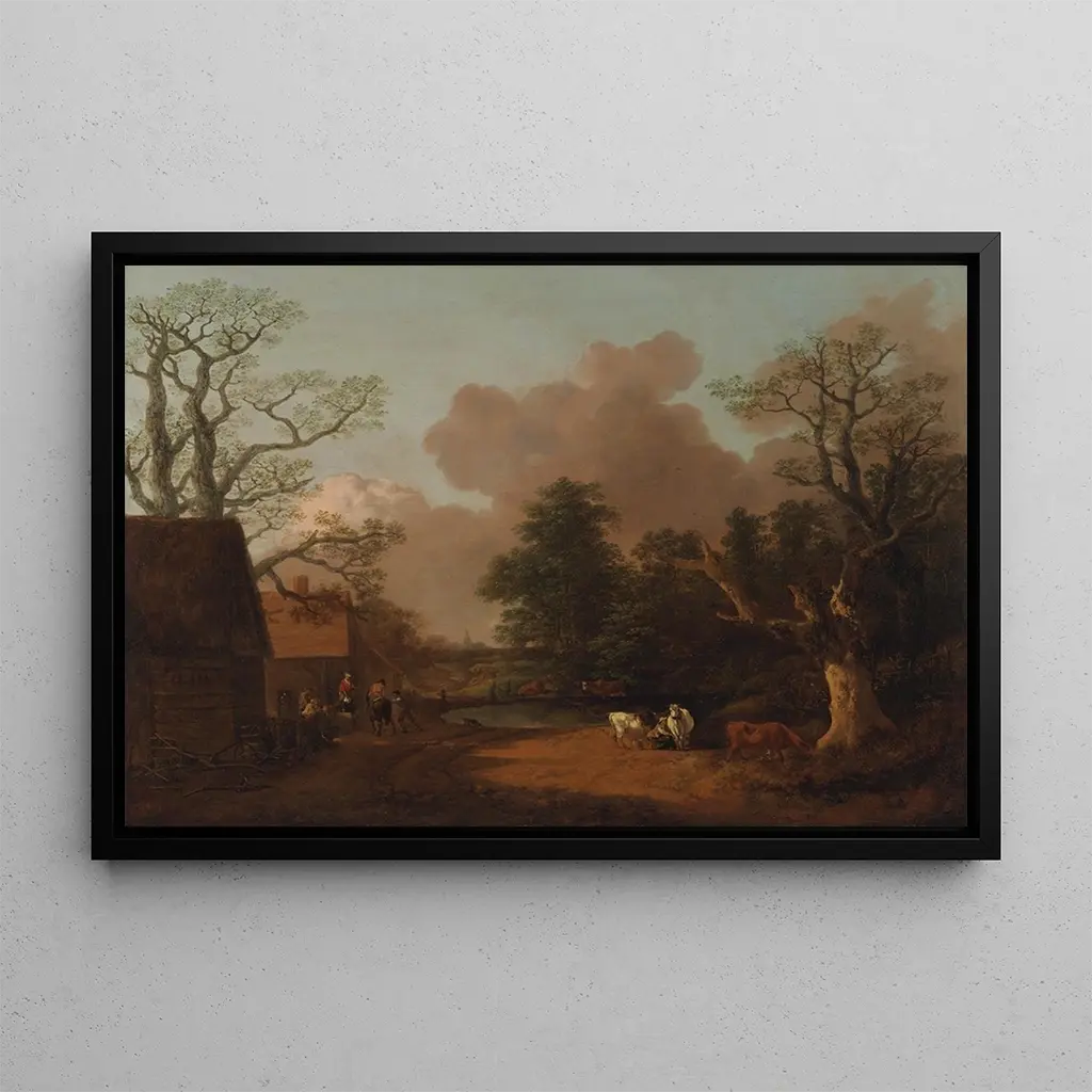 In "Paysage avec une Laitière" entführt uns Thomas Gainsborough in eine idyllische ländliche Landschaft. Das Gemälde zeigt eine Laitière, die ihren täglichen Aufgaben nachgeht, umgeben von üppigem Grün und einem sanften Licht, das die Formen liebkost. Die zarten Farben und die minutösen Details offenbaren eine außergewöhnliche Meisterschaft in der Maltechnik und schaffen eine ruhige, nostalgische Atmosphäre. Dieses Werk ist eine Hommage an das Landleben, bei dem jedes Element, vom Himmel bis zu den Bäumen, zu einer visuellen Harmonie beiträgt, die zum Träumen einlädt.