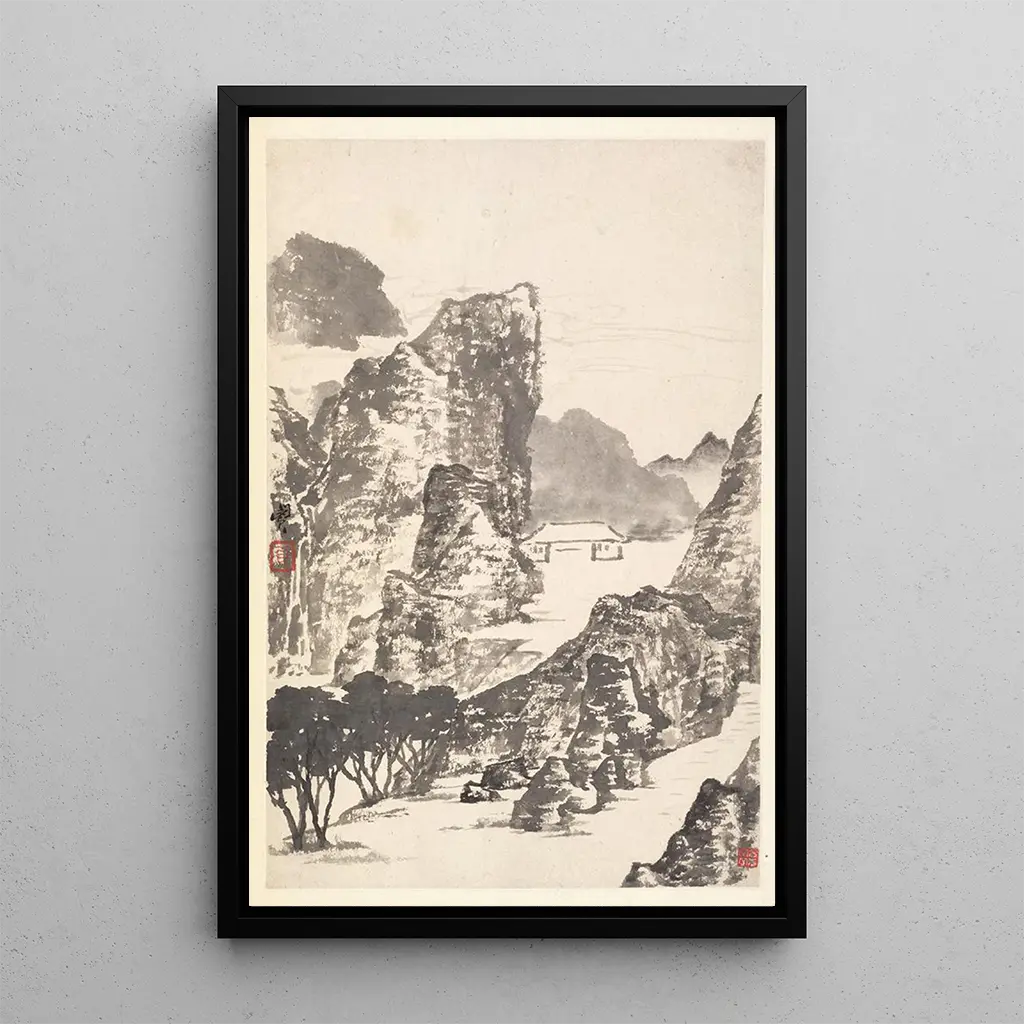 Paysage d'après Mi Fu : eine Harmonie zwischen Natur und Geist Der "Paysage d'après Mi Fu" Kunstdruck vermittelt eine tiefe Gelassenheit, bei der majestätische Berge sich mit verschlungenen Flüssen verbinden. Die Nuancen von Grün und Blau verschmelzen zu einer beruhigenden Atmosphäre. Die Technik der Tusche auf Seide, typisch für die chinesische Malerei, verleiht dem Werk Leichtigkeit und Fließfähigkeit. Jeder Pinselstrich scheint das Wesen der Natur einzufangen und lädt den Betrachter zu stiller Betrachtung ein. Dieses Landschaftsbild, zugleich realistisch und idealisiert, spiegelt eine poetische Sicht auf die Welt wider, in der Harmonie zwischen Mensch und Umwelt herrscht. Min Zhen: ein Meister der chinesischen Landschaftsmalerei Min Zhen, ein einflussreicher Künstler der Ming-Dynastie, gehört zu den großen Meistern der chinesischen malerei. Sein Werk ist geprägt von tiefer Bewunderung für die künstlerischen Traditionen, insbesondere jene von Mi Fu und Ma Yuan. Min Zhen hat Elemente taoistischer Philosophie in seine Kreationen integriert und die Bedeutung von Natur und Harmonie hervorgehoben. Sein Stil, gekennzeichnet durch ausgewogene Kompositionen und zarte Farben, zeugt von beeindruckender technischer Meisterschaft. Durch die Neuinterpretation klassischer Landschaften hat er zum Reichtum des chinesischen künstlerischen Erbes beigetragen und einen bleibenden Eindruck bei seinen Zeitgenossen hinterlassen. Eine dekorative Anschaffung mit vielfältigen Vorzügen Der Kunstdruck des "Paysage d'après Mi Fu" ist ein ideales Dekorationsstück, um Ihr Zuhause zu bereichern. Ob im Wohnzimmer, Büro oder Schlafzimmer – dieser Kunstdruck bringt Eleganz und Gelassenheit in den Raum. Die Qualität des Kunstdrucks garantiert detailgetreue Wiedergabe des Originals und bewahrt gleichzeitig die ästhetische Anziehungskraft des Werks. Mit diesem Leinwandbild verleihen Sie Ihrem Raum eine zenartige Atmosphäre, die zur Reflexion und Entspannung einlädt. Die Harmonie der Farben und die Tiefe der Landschaften machen ihn zur perfekten Wahl für alle, die Kunst und Wohlbefinden im Alltag verbinden möchten.