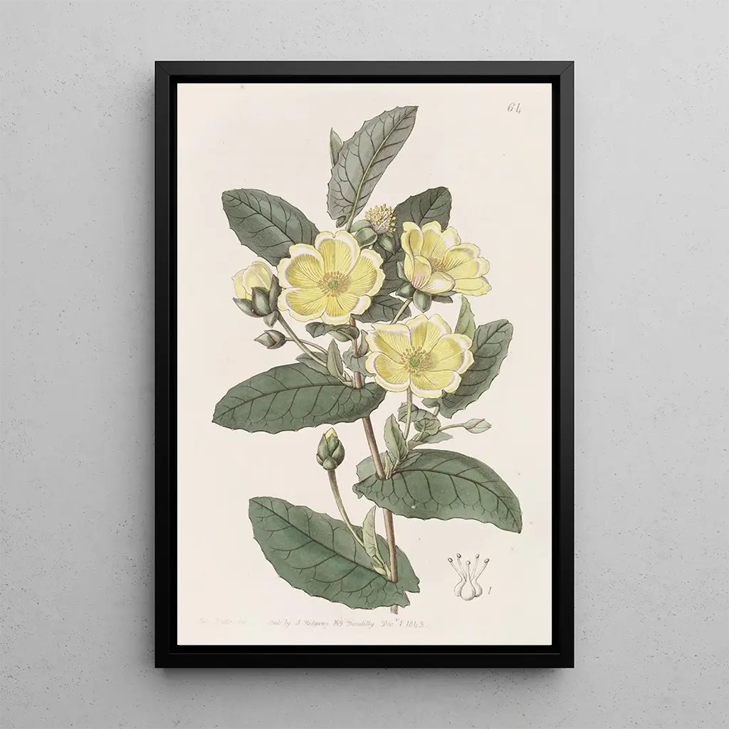 Der kunstdruck des L'hibbertia Thoroughwax ist eine perfekte Wahl, um Ihre Inneneinrichtung zu bereichern. Ob im Wohnzimmer, im Büro oder im Schlafzimmer – dieses Bild bringt Frische und Farbe in Ihren Raum. Die Druckqualität garantiert eine detailgetreue Wiedergabe der Originalkunstwerke und Farben, während es gleichzeitig eine ästhetische Dimension hinzufügt. Mit diesem Leinwandbild wählen Sie ein Kunstwerk, das nicht nur Ihre Umgebung verschönert, sondern auch die Schönheit der Natur und die Kunst der botanischen Illustration feiert.