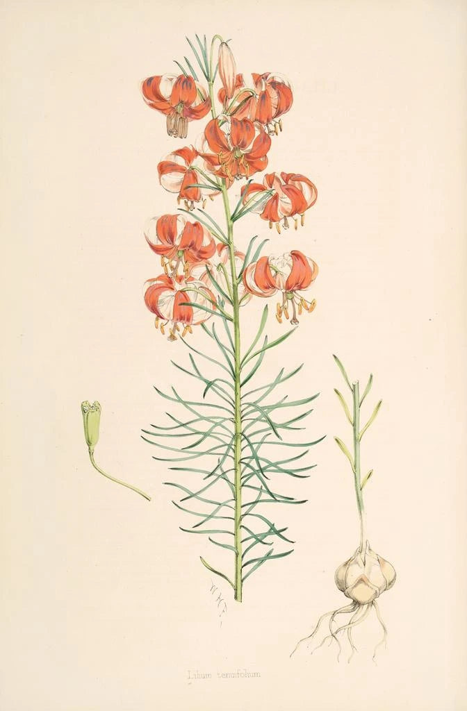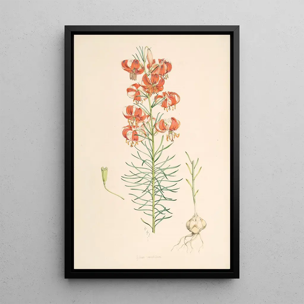 Walter Hood Fitch, Botaniker und Illustrator des 19. Jahrhunderts, prägte seine Zeit durch seinen einzigartigen Ansatz bei der Darstellung von Pflanzen. Ausgebildet an der École des Beaux-Arts in London, wurde er vom viktorianischen Bewegung beeinflusst, die die Natur und die Wissenschaft wertschätzte. Seine Werke, häufig veröffentlicht in botanischen Werken, zeugen von außergewöhnlicher Genauigkeit und einer Leidenschaft für die Flora. Fitch arbeitete mit zahlreichen Wissenschaftlern und Naturforschern zusammen und trug so zur Dokumentation der Biodiversität bei. Sein Stil, sowohl realistisch als auch poetisch, ehrte die Schönheit der Pflanzen und verfolgte gleichzeitig einen pädagogischen Zweck. Lilium Tenuifolium ist eines seiner emblematischen Werke und zeigt sein Talent auf perfekte Weise.