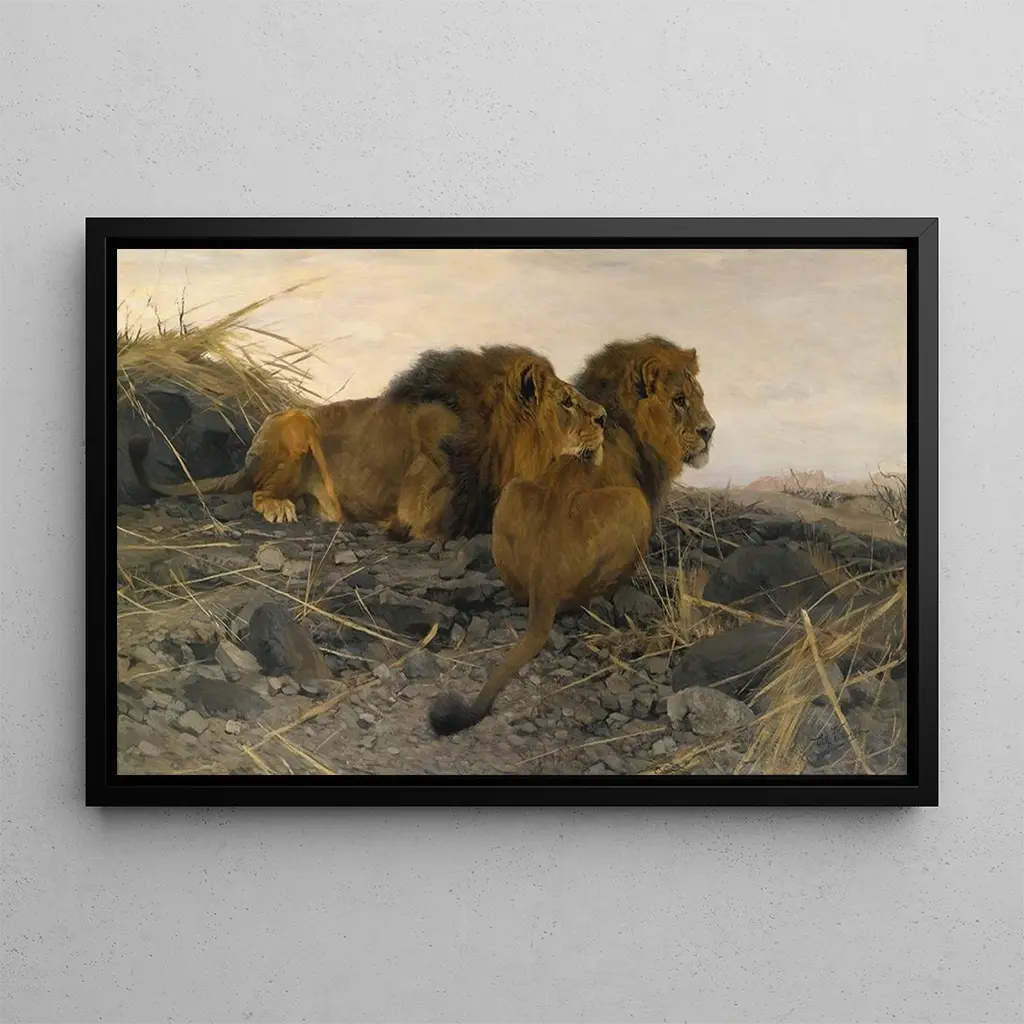 Lions im Ruhezustand: eine wilde Majestät, eingefangen in einem Kunstdruck In diesem Kunstdruck von Lions im Ruhezustand taucht Wilhelm Kuhnert ein in das Herz der afrikanischen Savanne, wo die Majestät der Löwen hervorgehoben wird. Das Werk zeigt zwei Löwen, majestätisch und gelassen, die ihre Umgebung mit fesselnder Intensität beobachten. Die warmen, erdigen Farben, die von tiefem Braun bis zu leuchtendem Gold reichen, rufen die Hitze der afrikanischen Sonne hervor. Kuhnerts Technik, die Realismus und detaillierte Feinheiten verbindet, ermöglicht es, die ruhige Kraft dieser emblematischen Kreaturen zu spüren, was dieses Bild zu einer wahren Hommage an die wilde Tierwelt macht. Wilhelm Kuhnert: ein Pionier der Tiermalerei Wilhelm Kuhnert, geboren 1865 in Deutschland, gilt als einer der bedeutendsten Tiermaler seiner Zeit. Seine Leidenschaft für die Natur und Tiere führt ihn auf Reisen durch Afrika, wo er die wilde Fauna beobachtet und in seinen Werken verewigt. Beeinflusst von der naturalistischen Bewegung, entwickelt Kuhnert einen Stil, der anatomische Präzision und Ausdruckskraft vereint. Seine Gemälde, die häufig in renommierten Galerien ausgestellt werden, zeugen von seinem Engagement für den Naturschutz und seiner Fähigkeit, die Seele der Tiere in ihrem natürlichen Lebensraum einzufangen, was ihn zu einer unverzichtbaren Figur der Tiermalerei macht. Eine dekorative Anschaffung mit vielfältigen Vorzügen Der kunstdruck von Lions im Ruhezustand ist ein Stück, das Ihre Innendekoration bereichern wird, sei es im Wohnzimmer, im Büro oder im Wartezimmer. Seine majestätische Ausstrahlung und seine wilde Atmosphäre verleihen Ihrem Raum einen Hauch von Exotik und Charakter. Die Qualität des kunstdrucks garantiert eine detailgetreue Wiedergabe der Farben und Details des Originalwerks, sodass Sie die Schönheit dieses Bildes voll und ganz genießen können. Mit diesem Werk schenken Sie Ihrem Interieur einen starken dekorativen Akzent und feiern gleichzeitig die Pracht der wilden Tierwelt, wodurch eine inspirierende und fesselnde Atmosphäre entsteht.