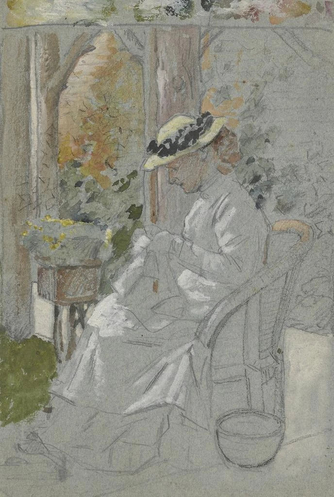 Gemälde Luise Scholderer auf der Veranda - Otto Scholderer | Kunstdruck