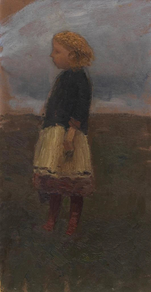 In diesem fesselnden Werk entführt uns Otto Modersohn in eine ländliche Landschaft, in der ein junges Mädchen ruhig auf der Heide steht. Die Komposition wird von sanften, natürlichen Farbtönen dominiert, die die Ruhe eines sonnigen Tages hervorrufen. Die Nuancen von Grün und Gelb verschmelzen harmonisch und schaffen eine friedliche, kontemplative Atmosphäre. Die impressionistische Technik von Modersohn zeigt sich durch fließende Pinselstriche, die die Szene lebendig machen und gleichzeitig eine gewisse Abstraktion bewahren. Dieses Bild lädt den Betrachter ein, in die einfache Schönheit der Natur einzutauchen und die intime Verbindung zwischen Mensch und Umwelt zu schätzen.