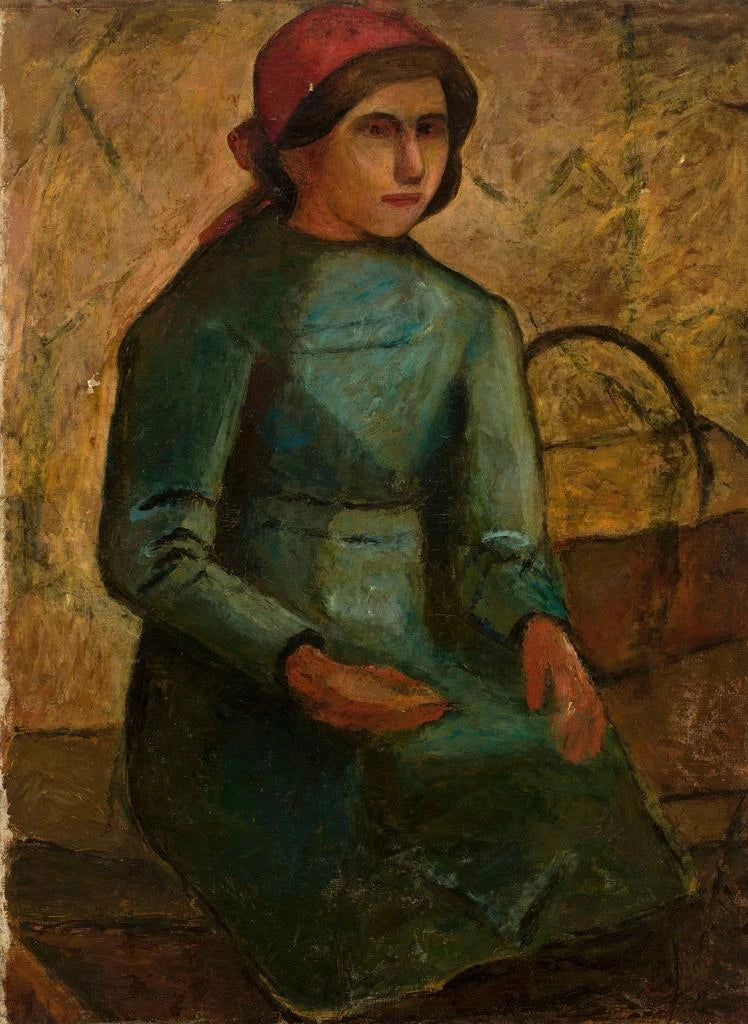 Mädchen in grünem Kleid mit Korb - Tadeusz Makowski